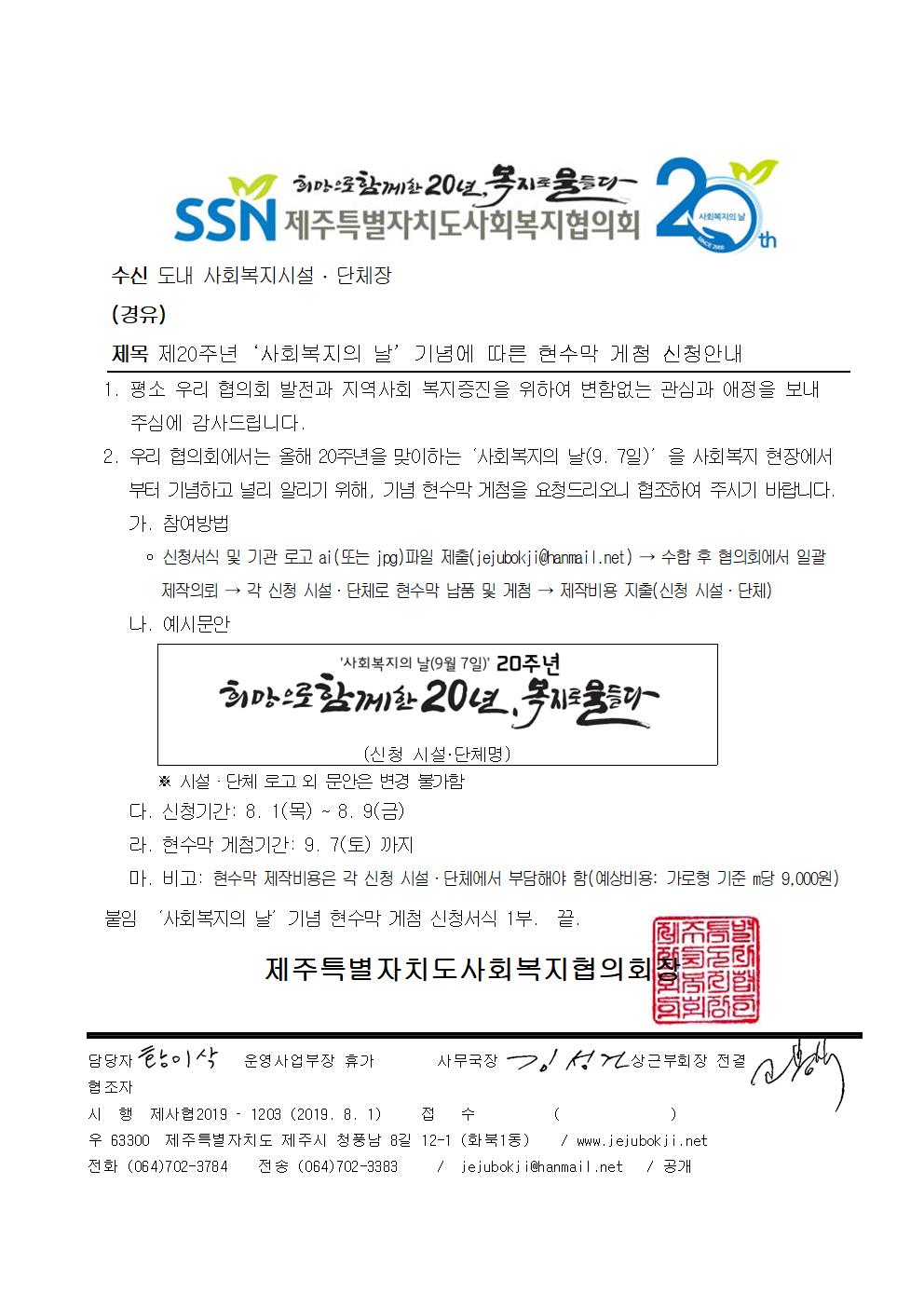 제20주년 ‘사회복지의 날’ 기념에 따른 현수막 게첨 신청안내