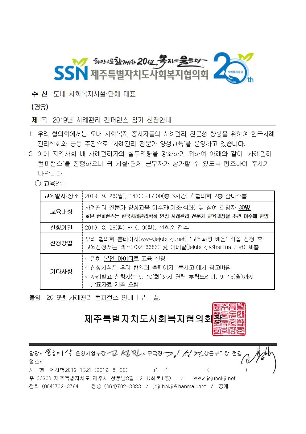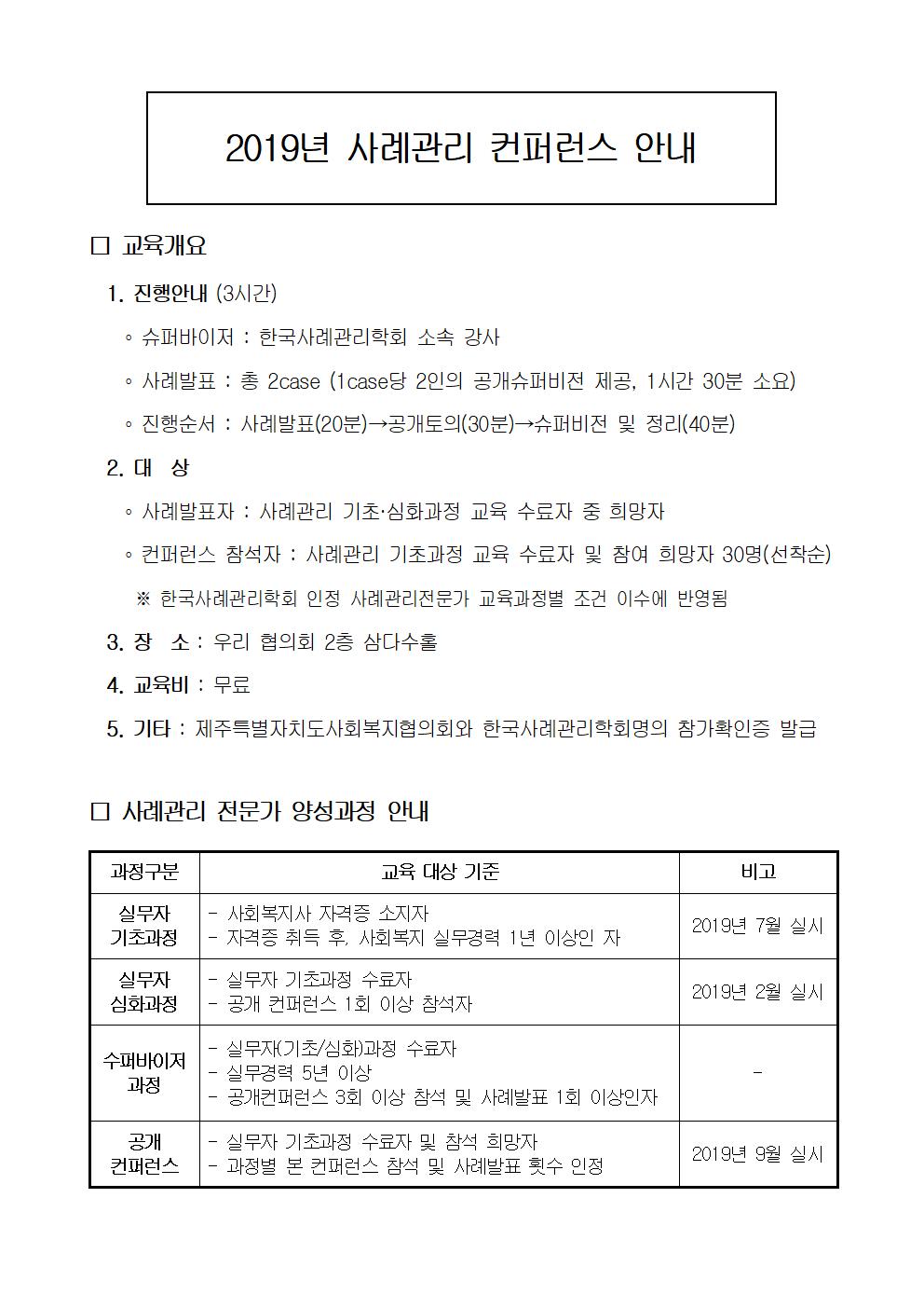 2019년 사례관리 컨퍼런스 참가 신청안내