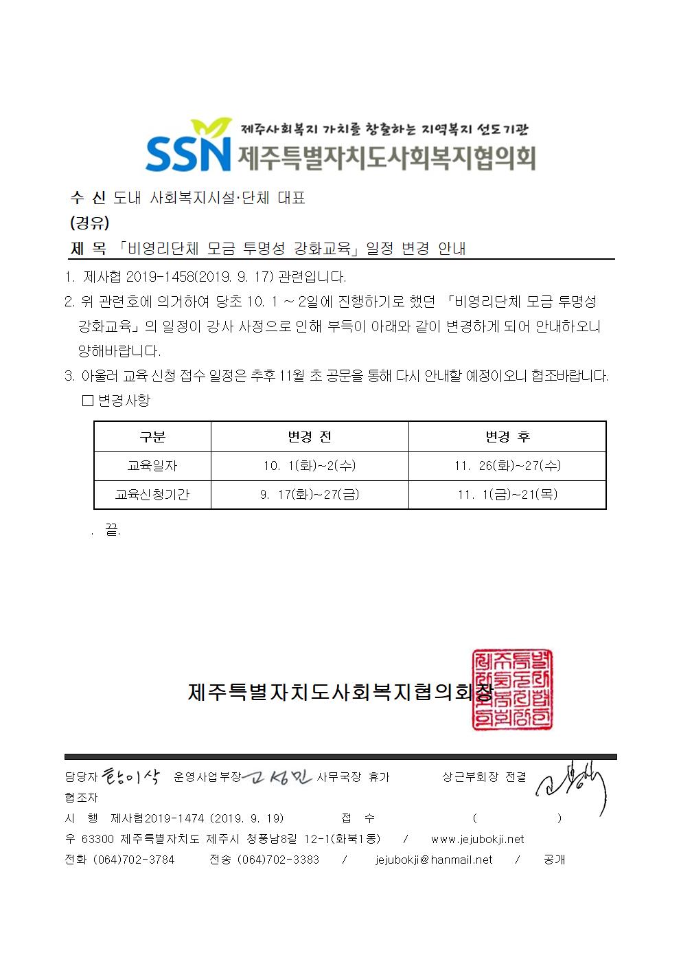 「비영리단체 모금 투명성 강화교육」일정 변경 안내