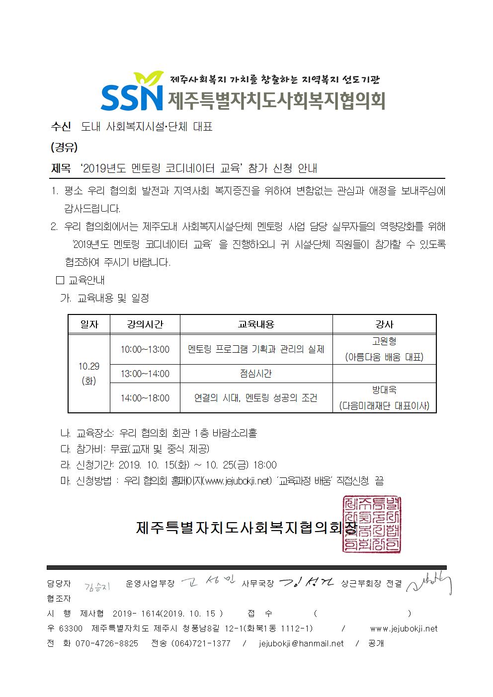 '2019년도 멘토링 코디네이터 교육' 참가 신청 안내