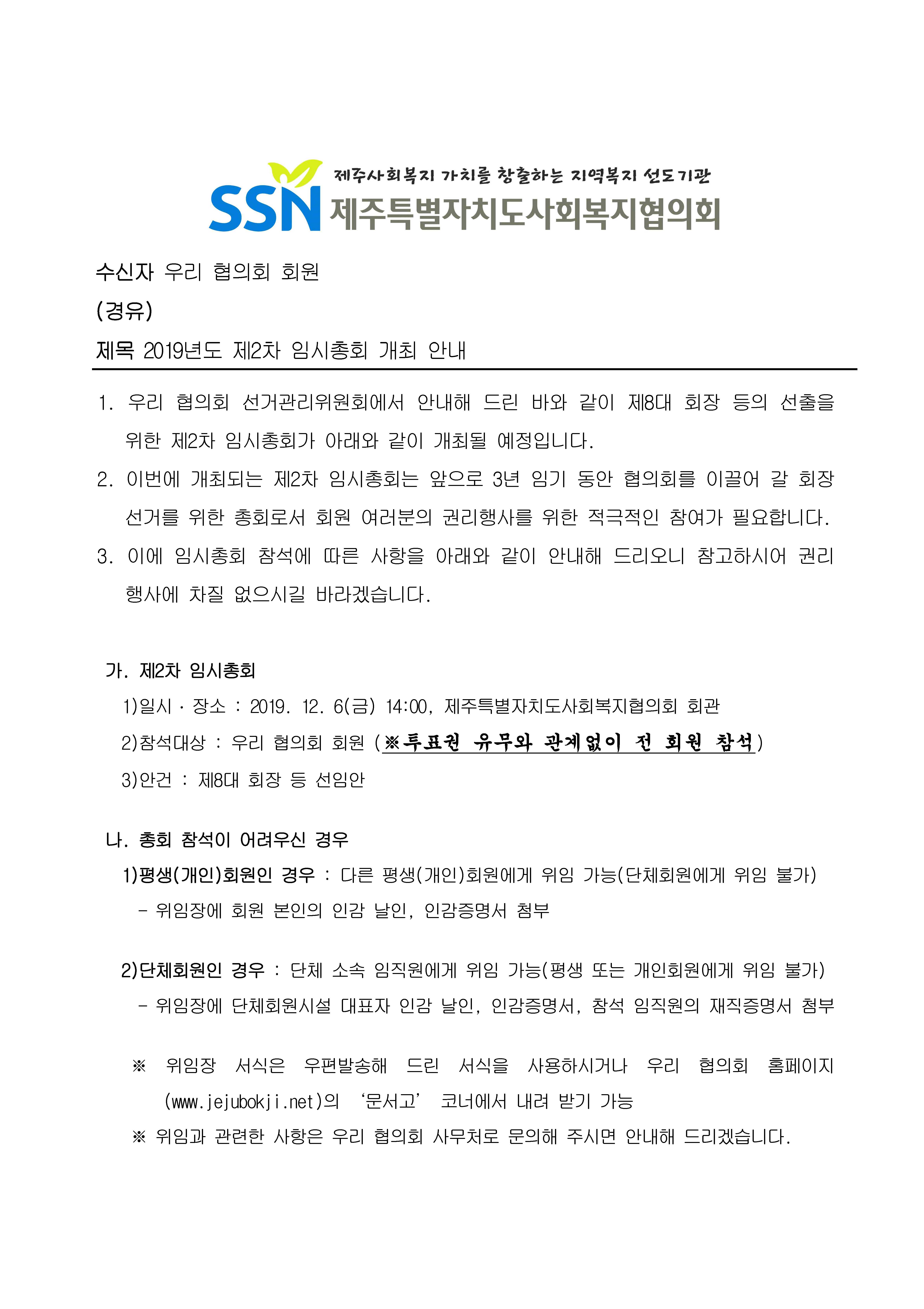 2019년도 제2차 임시총회 개최안내