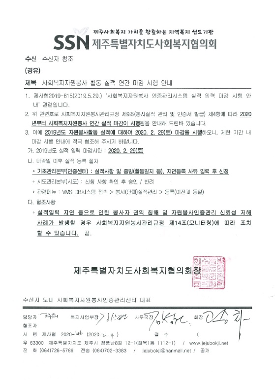 사회복지자원봉사 활동 실적 연간 마감 시행 안내