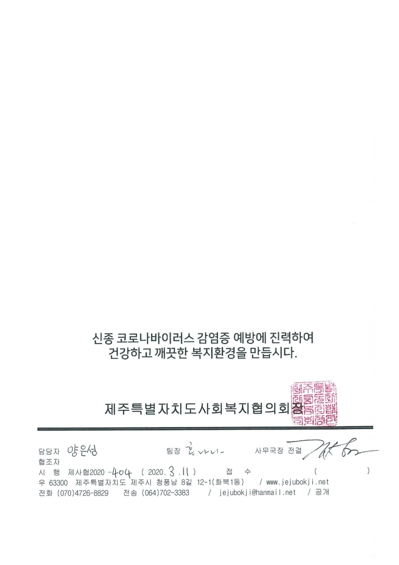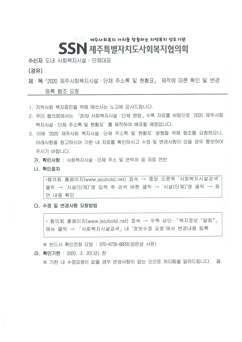 2020 제주사회복지시설 · 단체 주소록 및 현황표 제작에 따른 확인 및 변경 등록 협조 요청