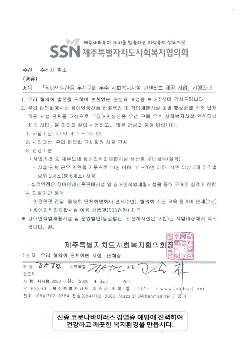 「장애인생산품 우선구매 우수 사회복지시설 인센티브 제공사업」시행안내