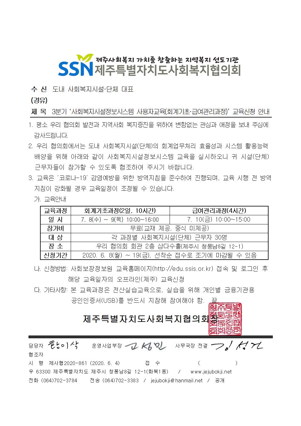 3분기 '사회복지시설정보시스템 사용자교육(회계기초·급여관리과정)' 교육신청 안내