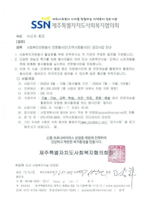 2020년 전문봉사단 공모사업 추진안내