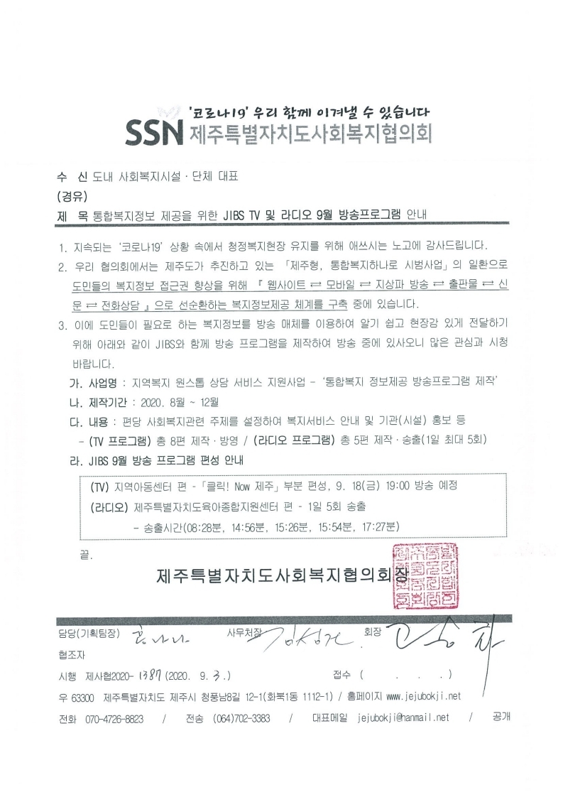 통합복지정보 제공을 위한 JIBS TV 및 라디오 9월 방송프로그램 안내