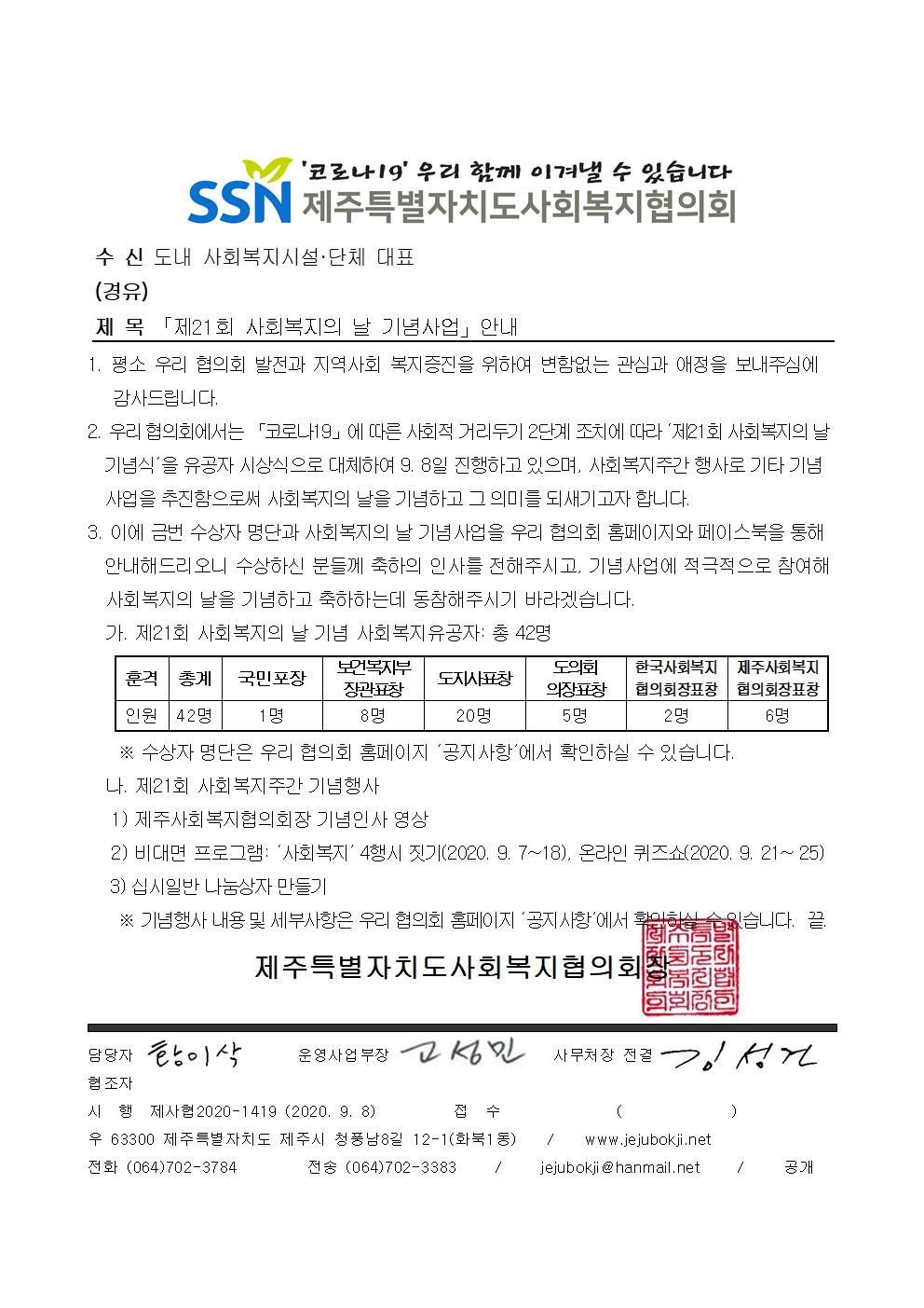 「제21회 사회복지의 날 기념사업」안내