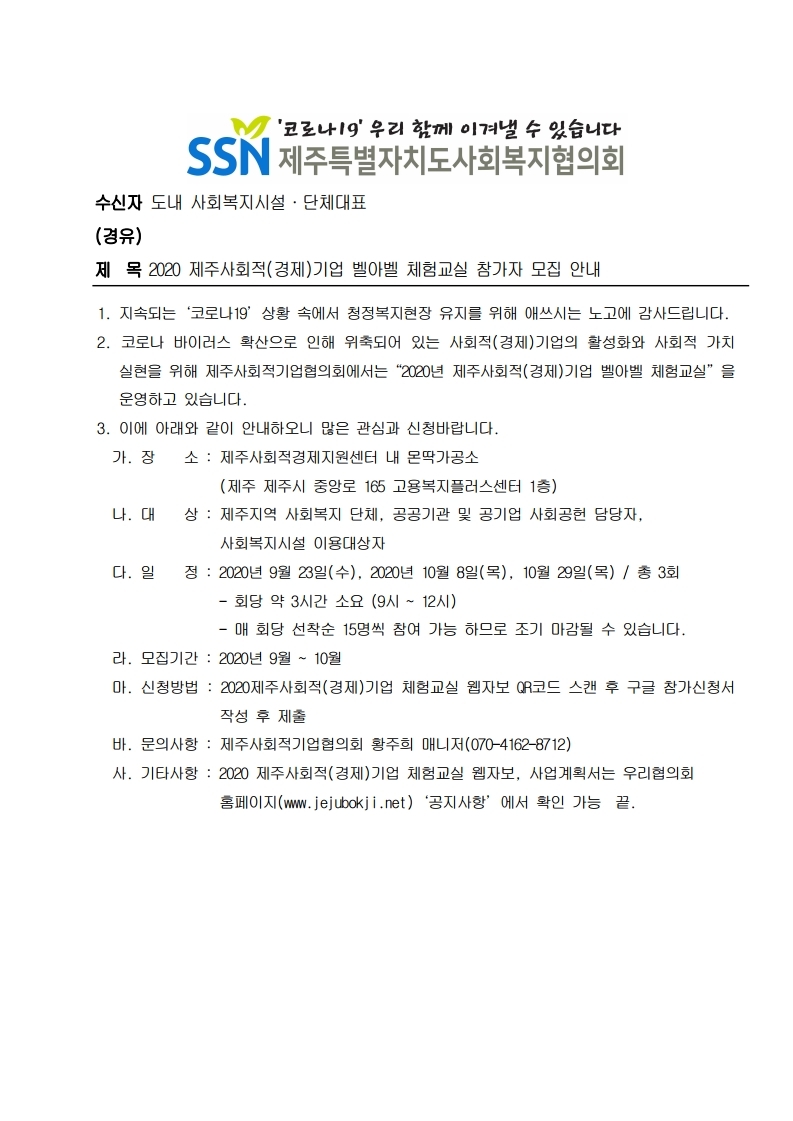 2020 제주사회적(경제)기업 벨아벨 체험교실 참가자 모집 안내