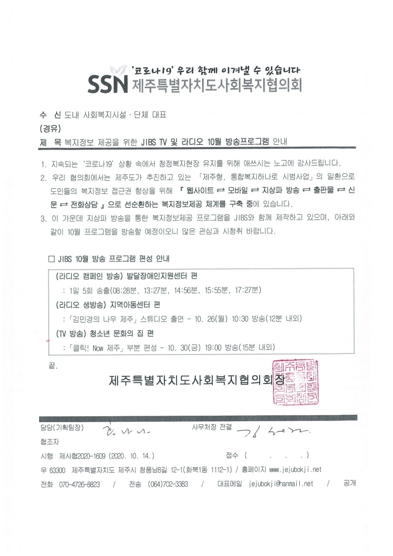 복지정보 제공을 위한 JIBS TV 및 라디오 10월 방송프로그램 안내