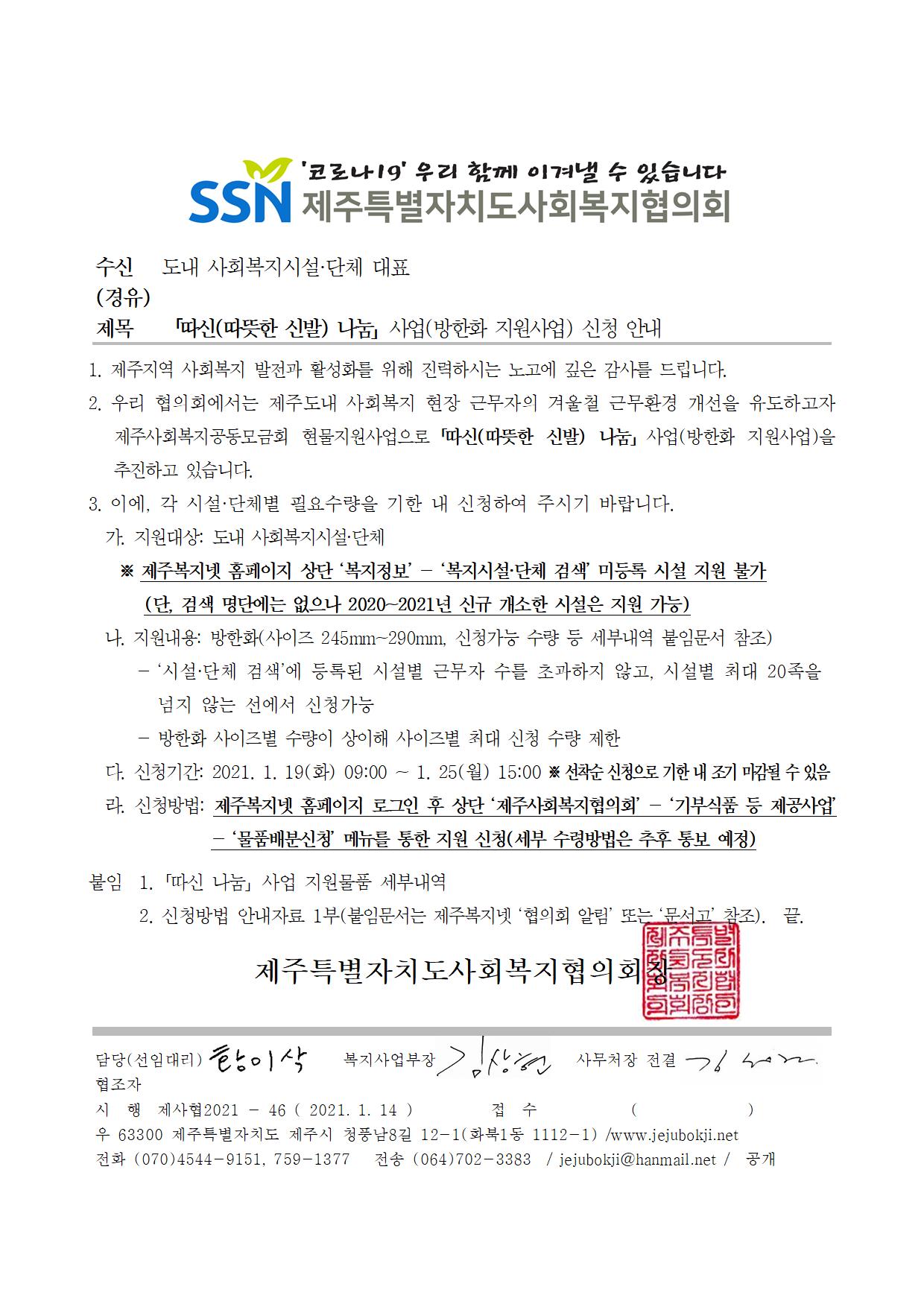 「따신(따뜻한 신발) 나눔」사업(방한화 지원사업) 신청 안내