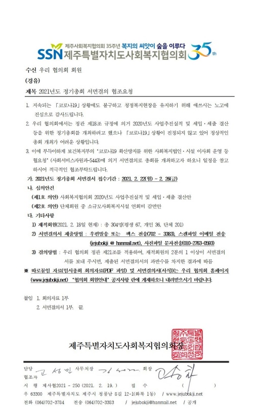 2021년도 정기총회 서면결의 협조요청