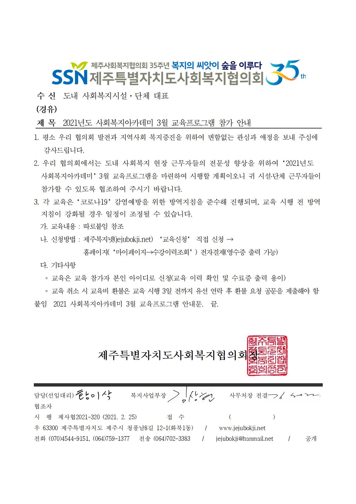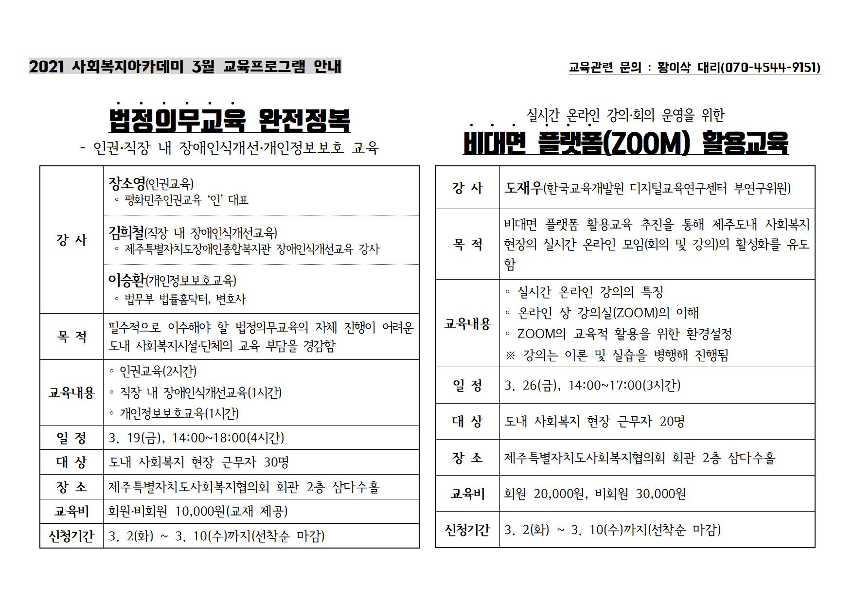 2021년도 사회복지아카데미 3월 교육프로그램 참가 안내
