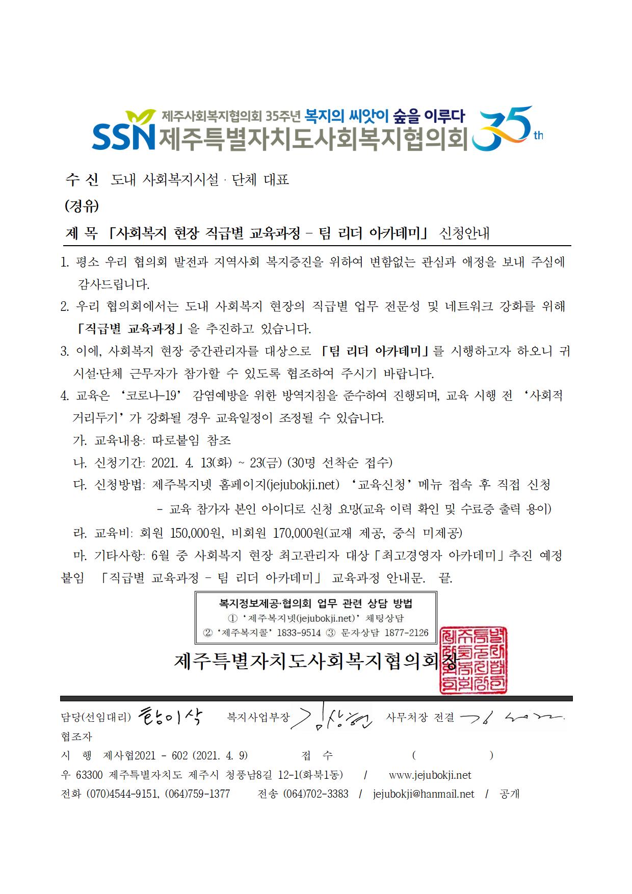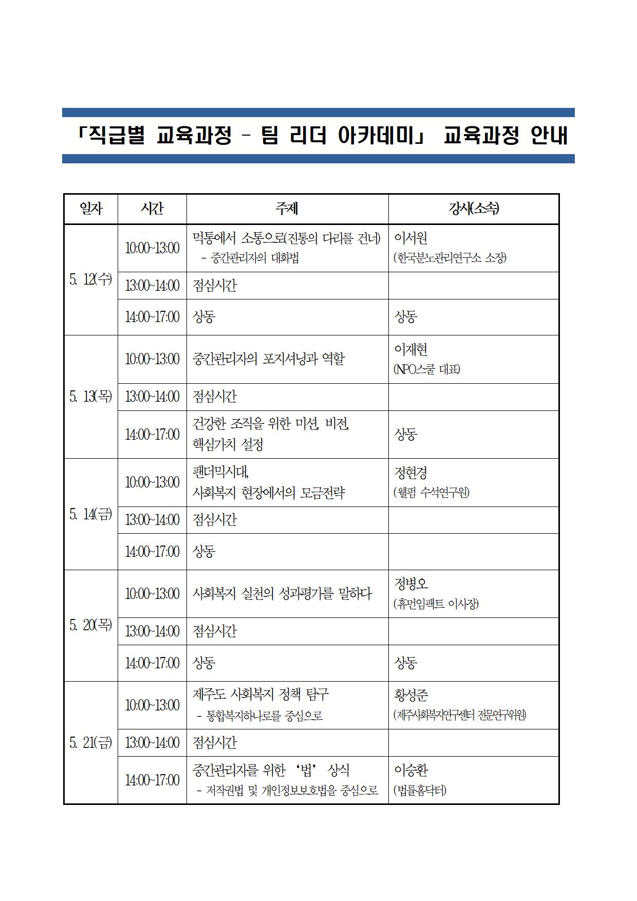 「사회복지 현장 직급별 교육과정 – 팀 리더 아카데미」 신청안내