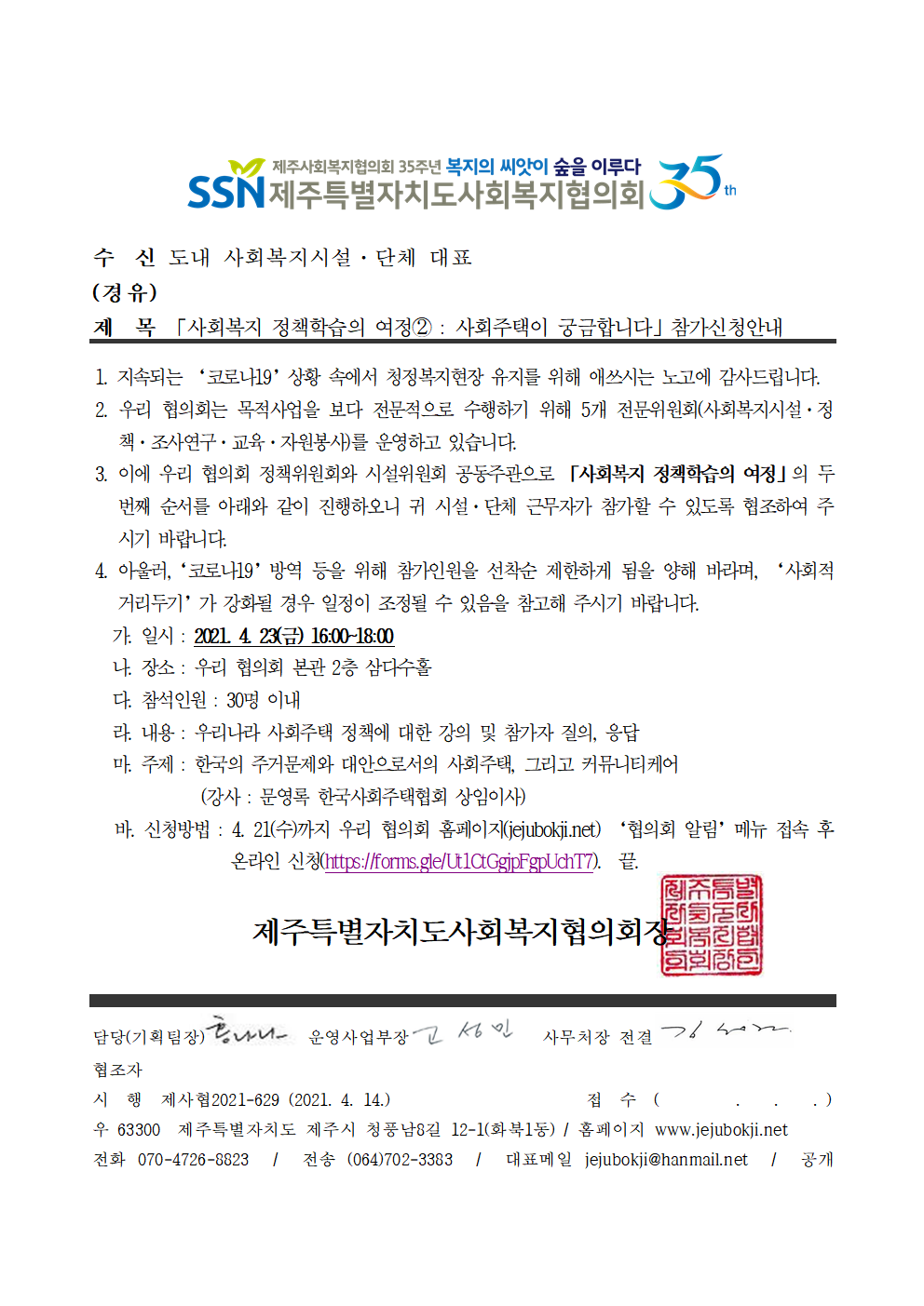 사회복지 정책학습의 여정② : 사회주택이 궁금합니다」참가신청안내