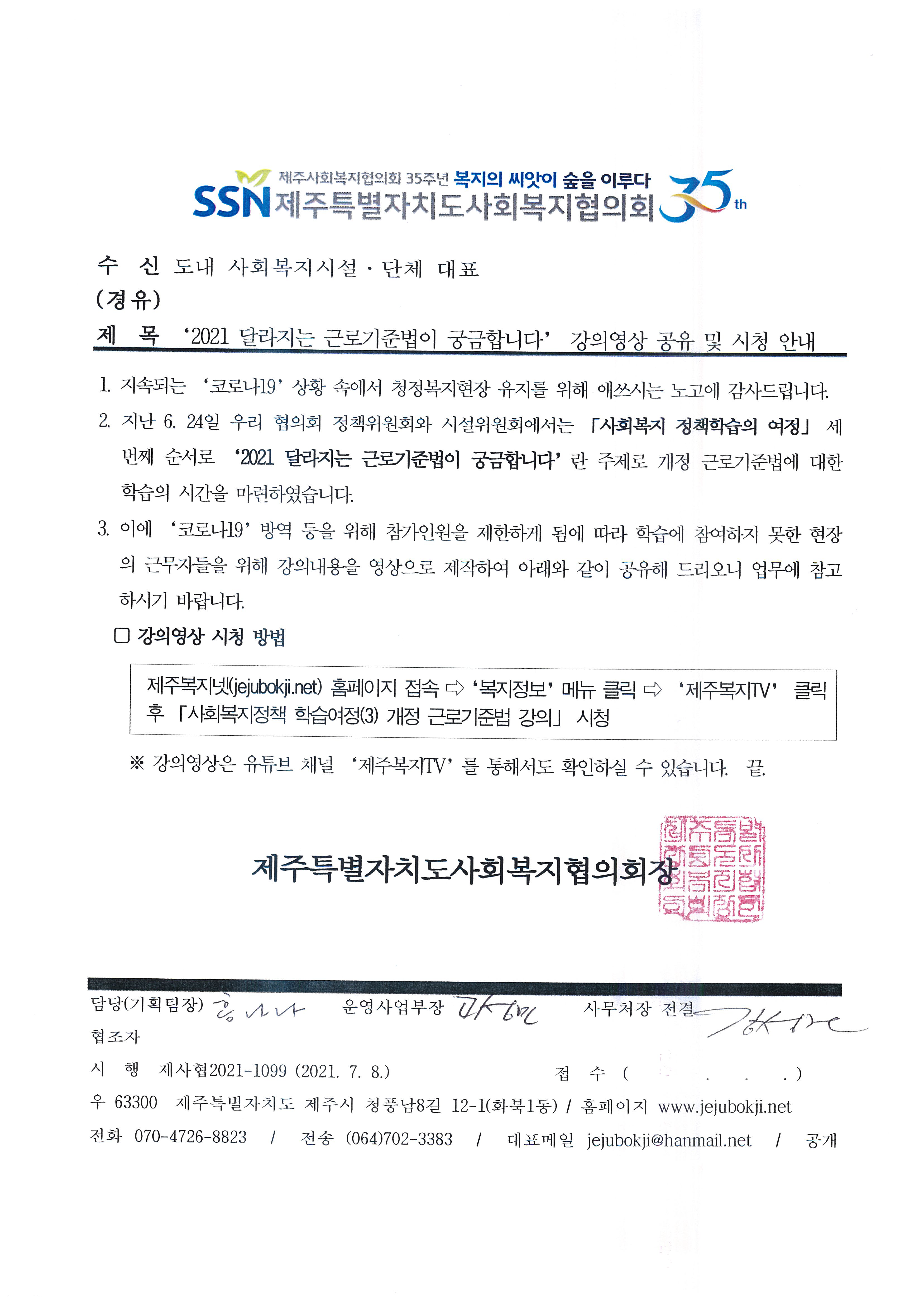 '2021 달라지는 근로기준법이 궁금합니다' 강의영상 공유 및 시청 안내