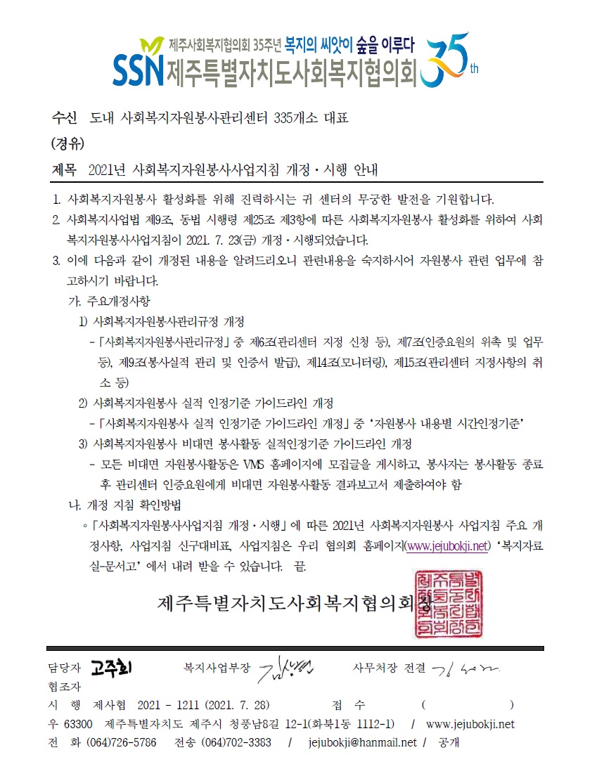 2021년 사회복지자원봉사사업지침 개정·시행 안내