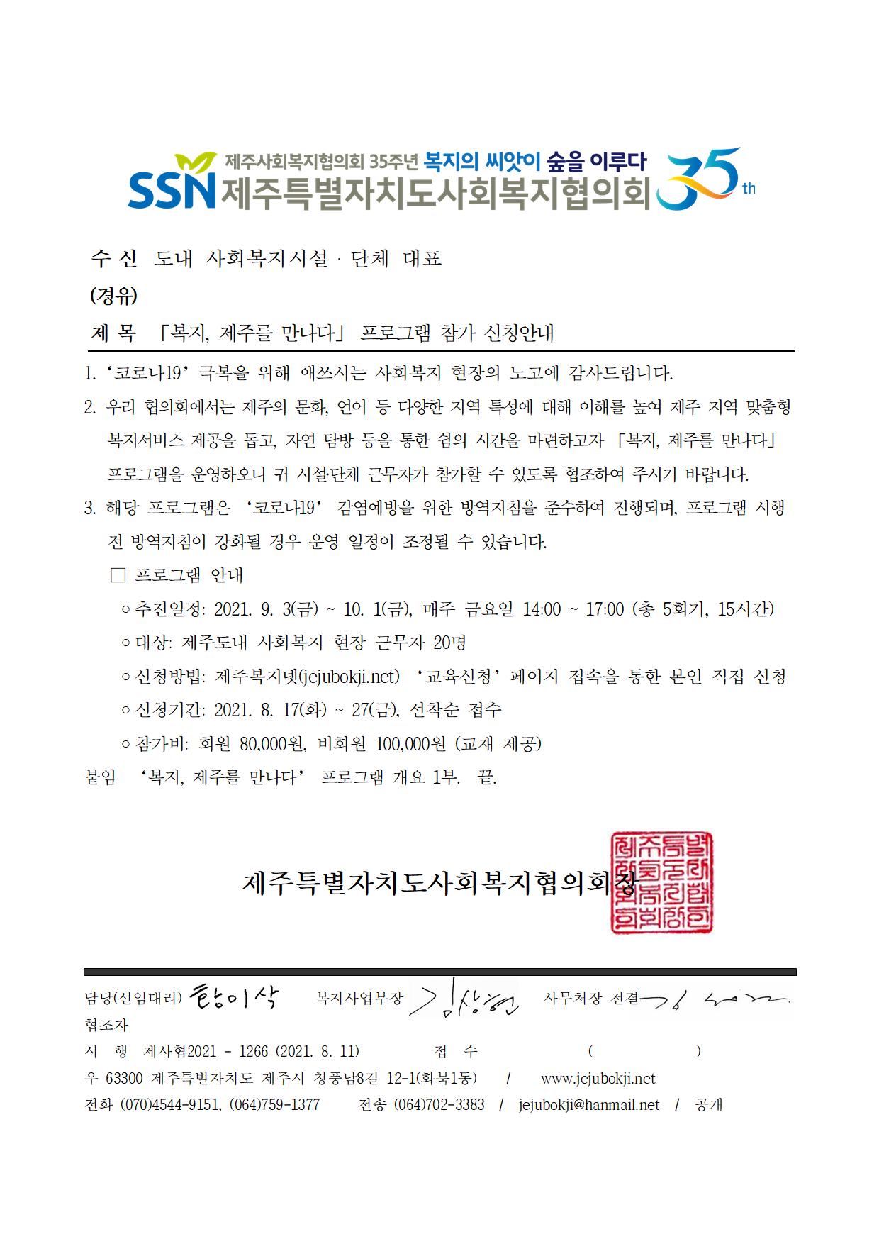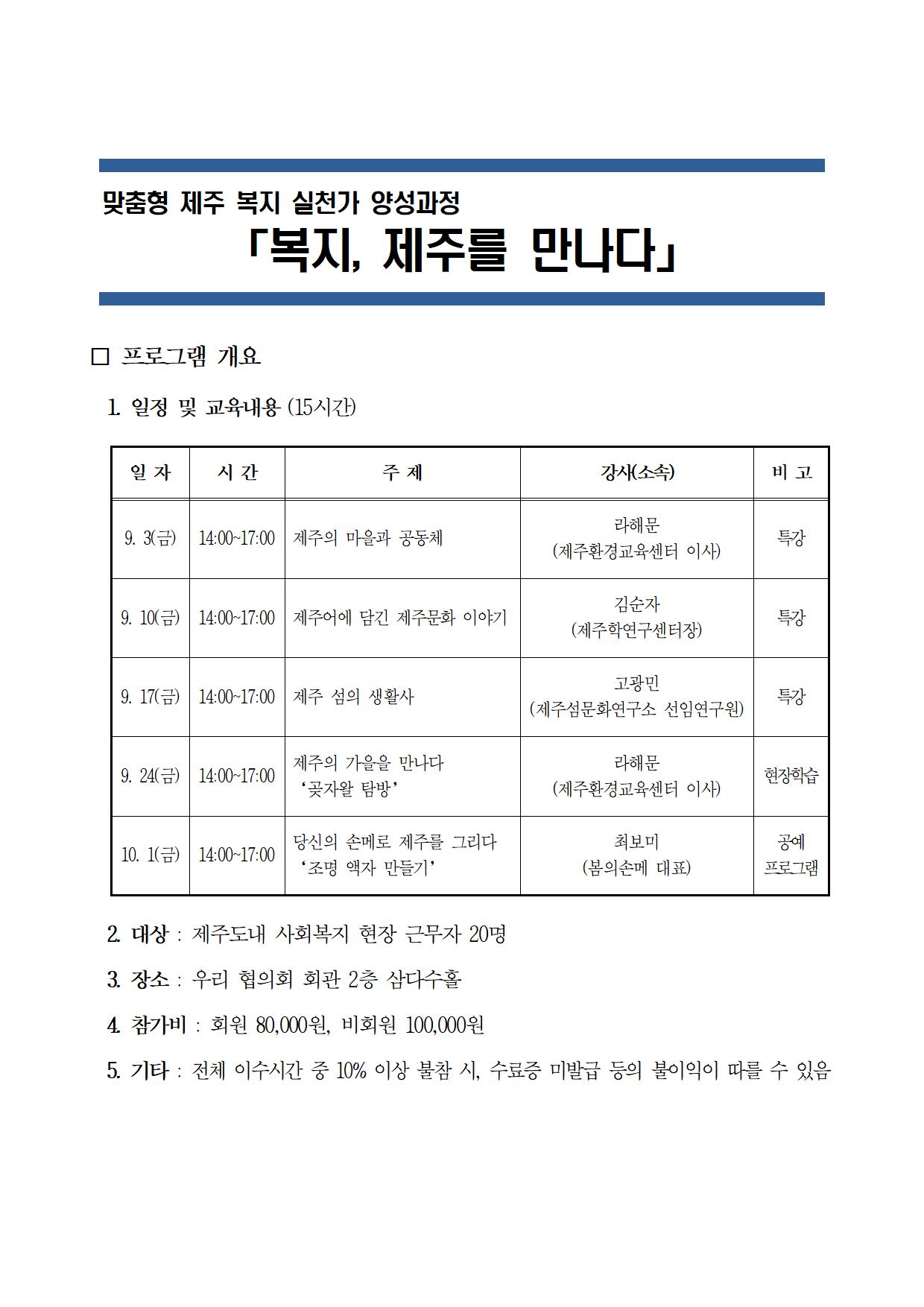 「복지, 제주를 만나다」 프로그램 참가 신청안내