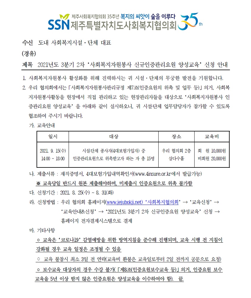 2021. 3분기 2차 신규인증요원 양성교육 참가신청 안내(공문).pdf