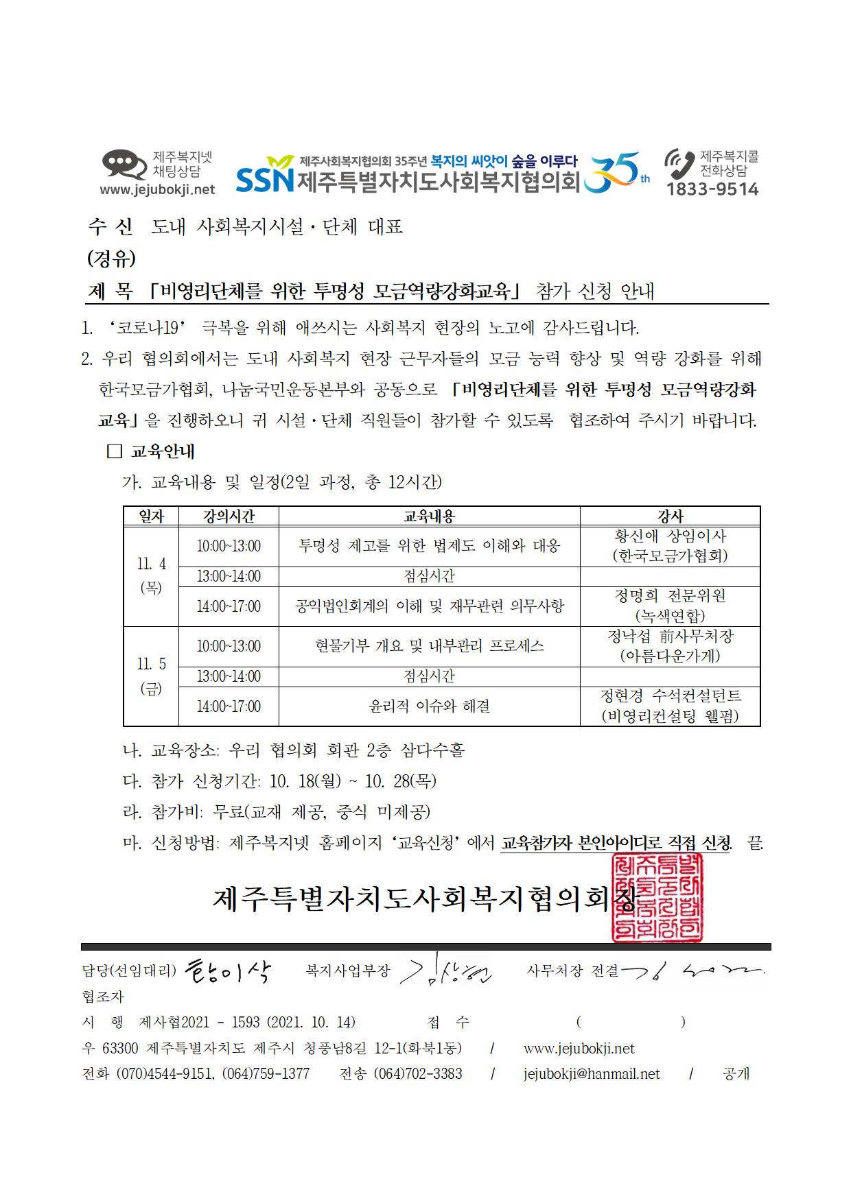 「비영리단체를 위한 투명성 모금역량강화교육」 참가 신청 안내