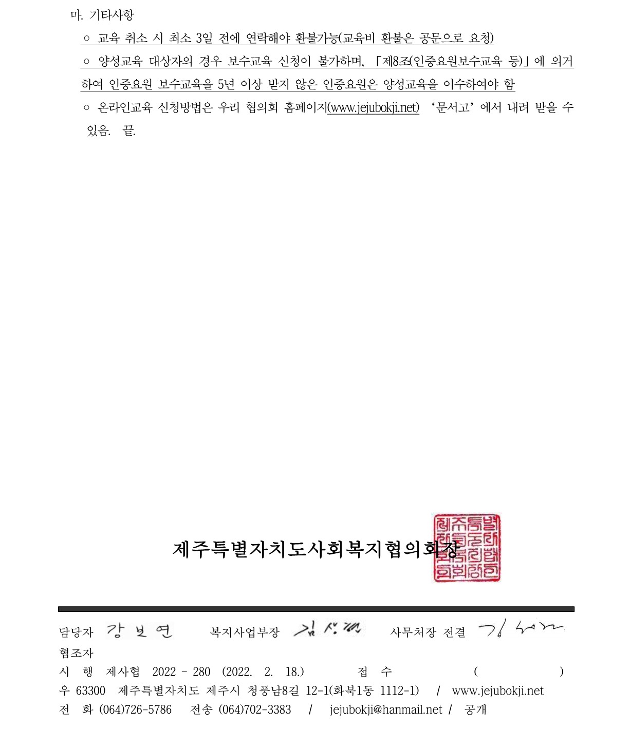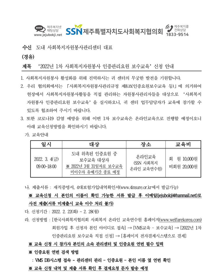 2022년 1차 사회복지자원봉사 인증요원 보수교육 신청 안내