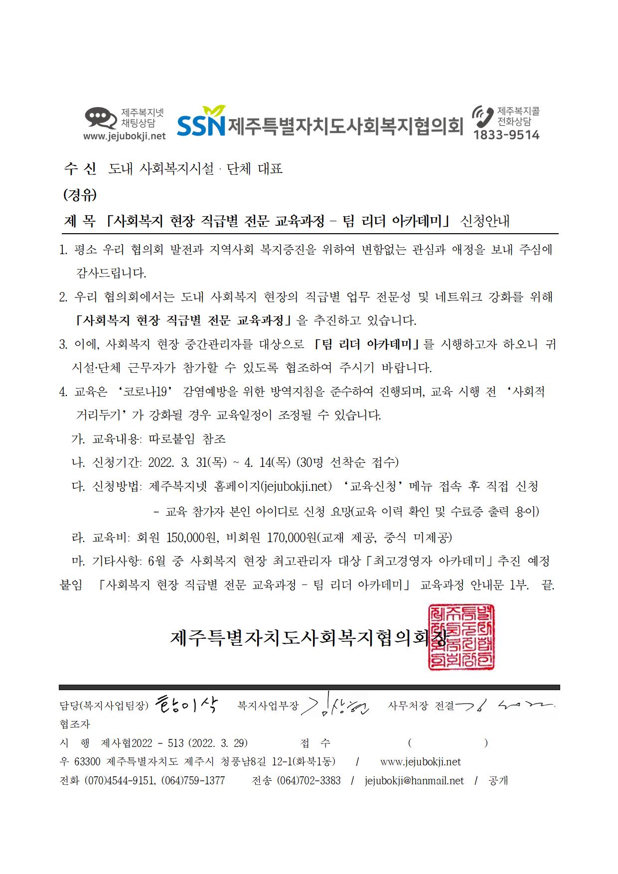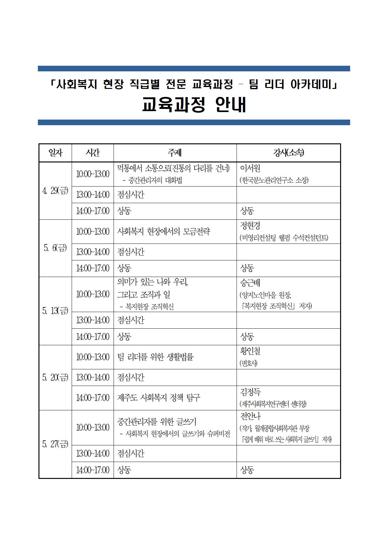 「사회복지 현장 직급별 전문 교육과정 – 팀 리더 아카데미」 신청안내