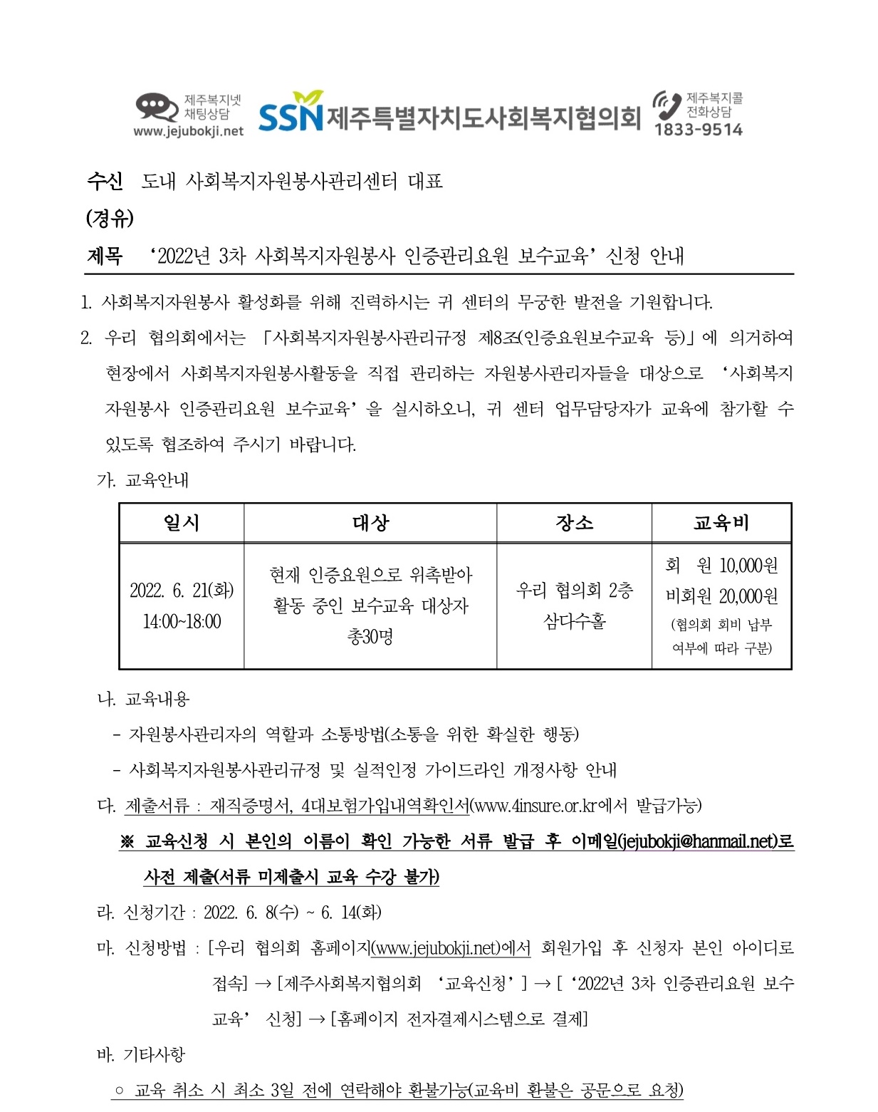 2022. 3차 사회복지자원봉사 인증요원 보수교육 신청 안내