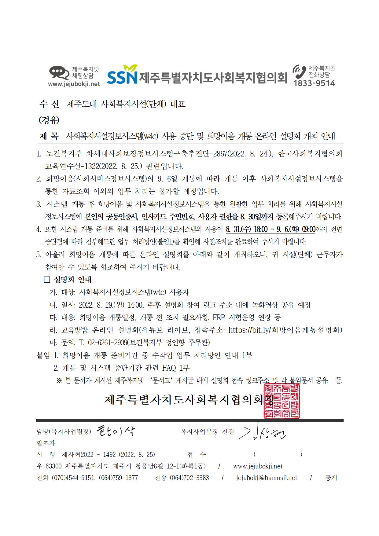 희망이음(사회서비스정보시스템) 개통 온라인 설명회 일정이