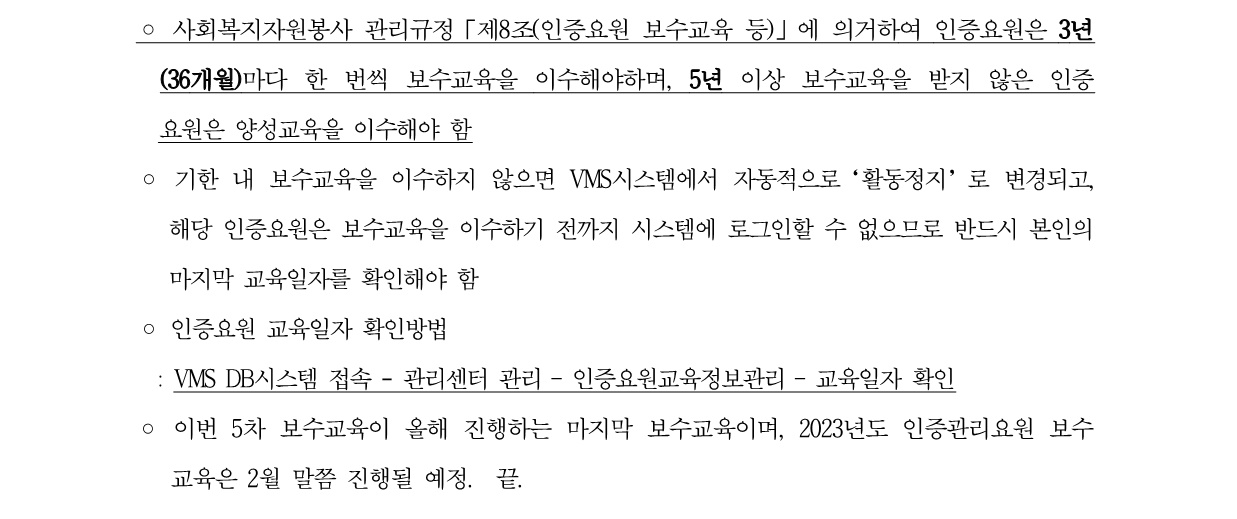 5차 사회복지자원봉사 인증요원 보수교육 신청안내