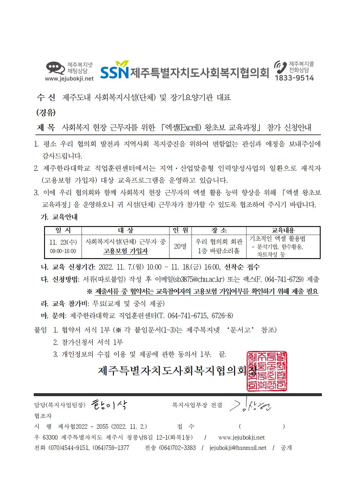 (마감)사회복지 현장 근무자를 위한 「엑셀(Excel) 왕초보 교육과정」 참가 신청안내