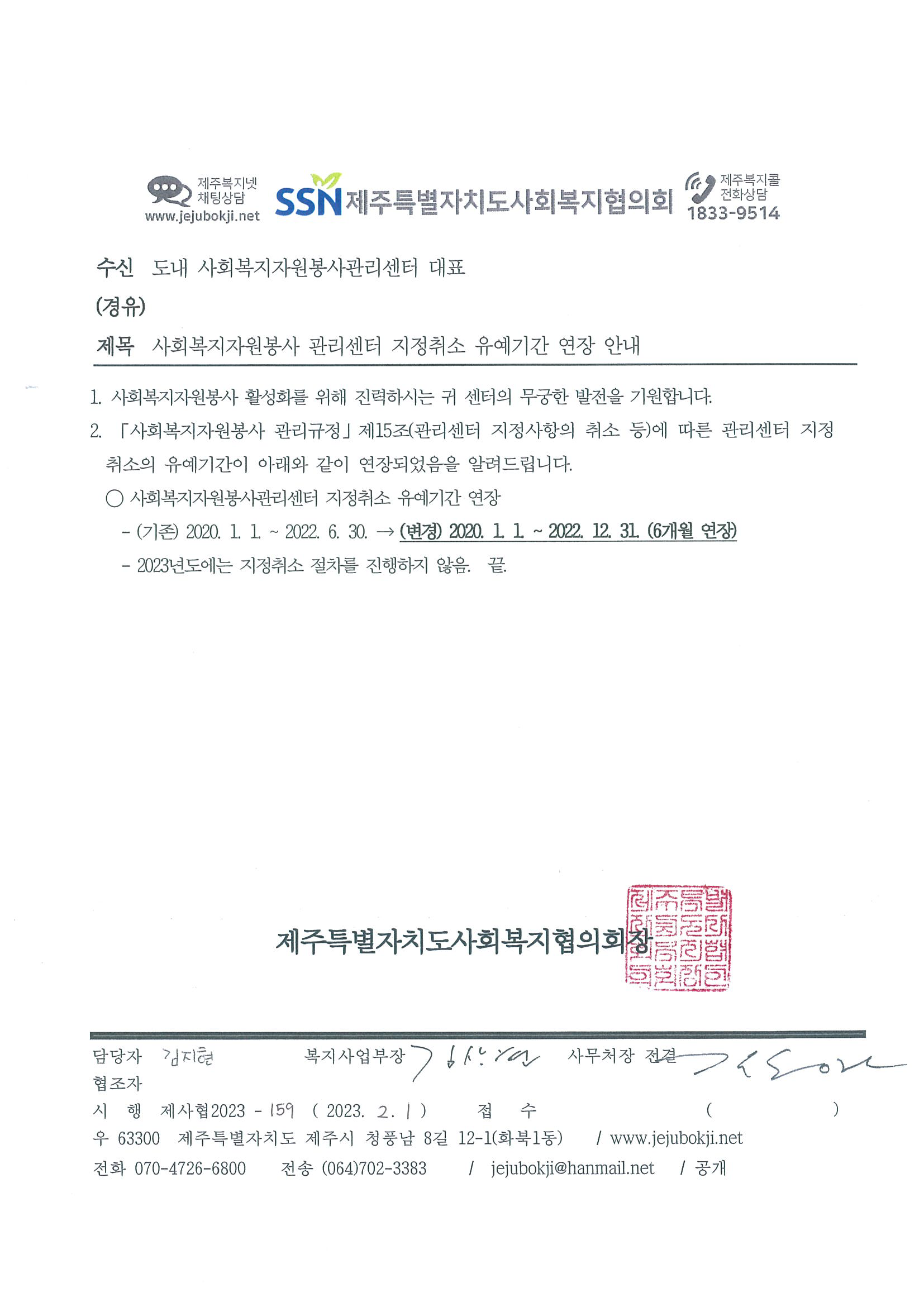 사회복지자원봉사 관리센터 지정취소 유예기간 연장 안내