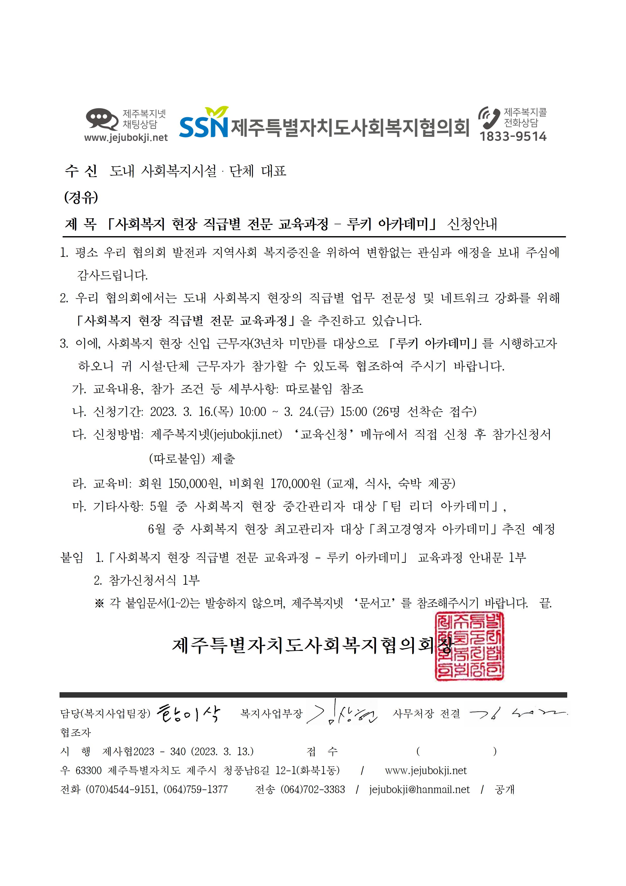 「사회복지 현장 직급별 전문 교육과정 – 루키 아카데미」 신청안내
