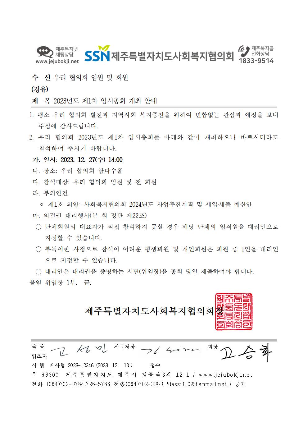 2023년도 제1차 임시총회 개최 안내
