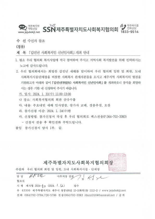 「갑진년 사회복지인 신년인사회」 개최 안내