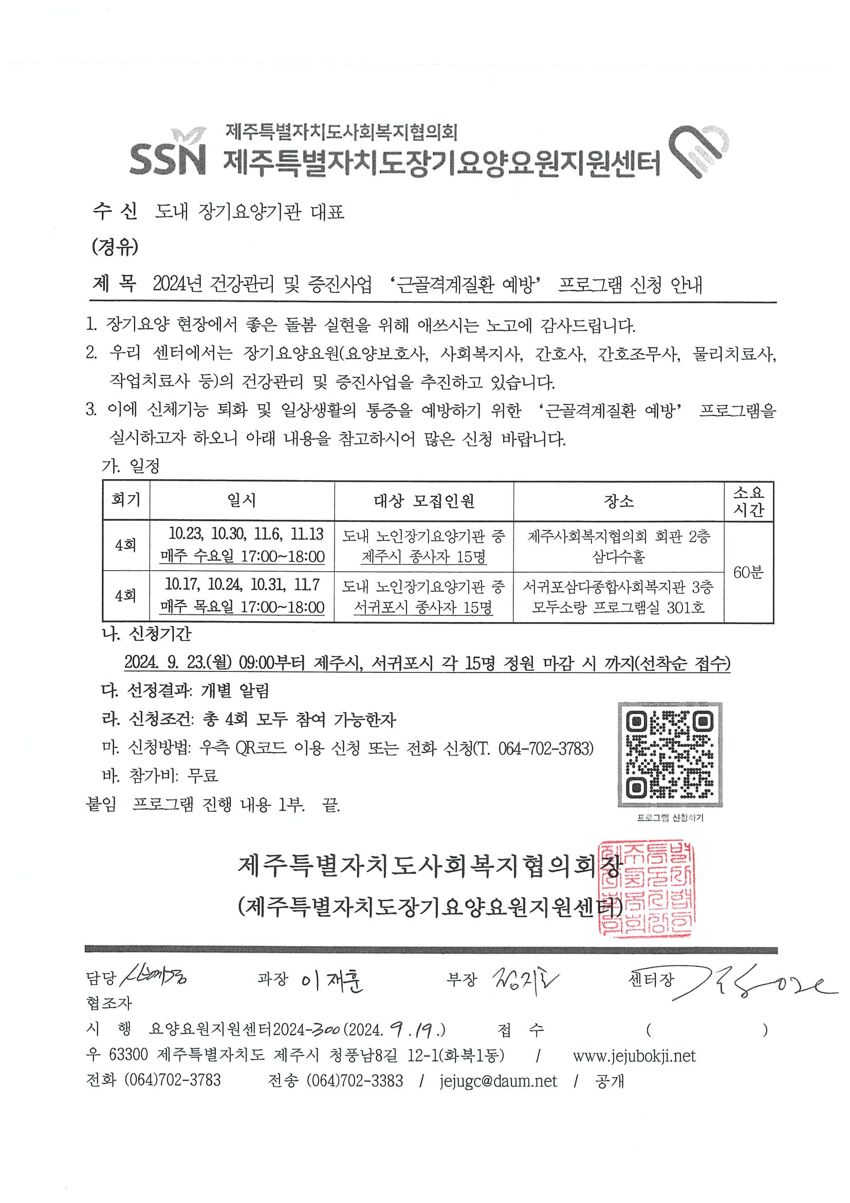 2024년 건강관리 및 증진사업 '근골격계질환 예방' 프로그램 신청 안내
