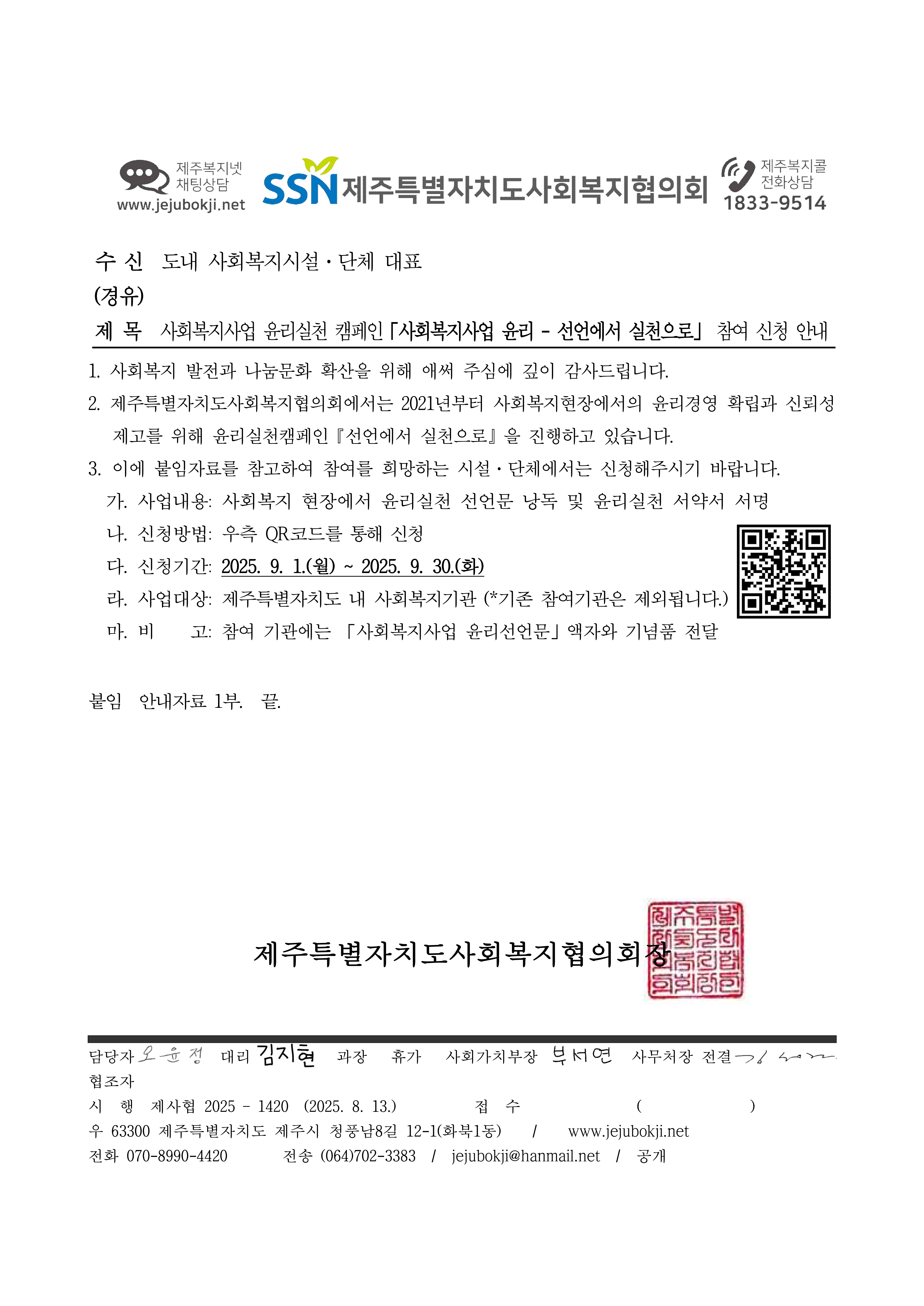 사회복지사업 윤리실천 캠페인「사회복지사업 윤리 - 선언에서 실천으로」 참여 신청 안내