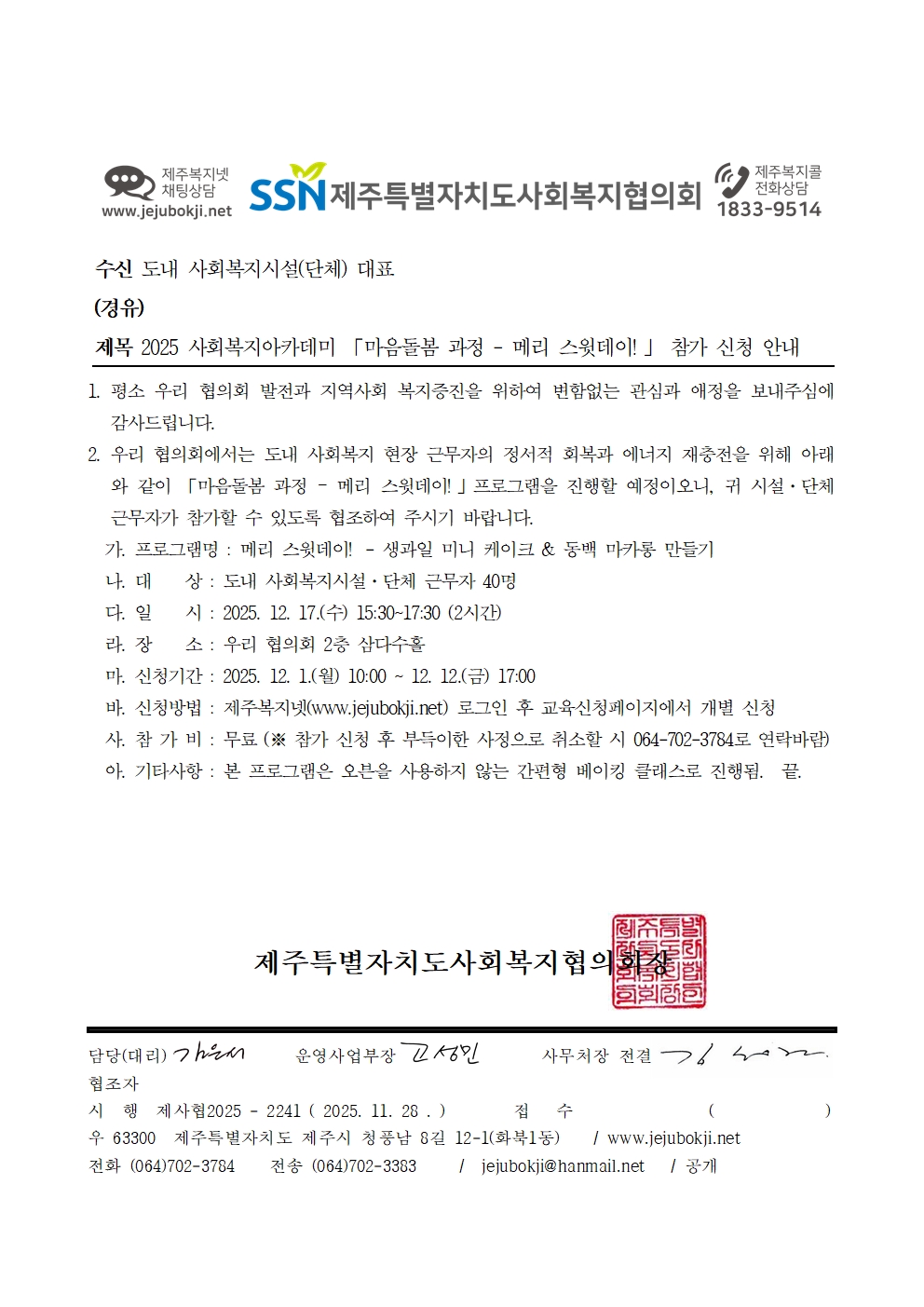 2025 사회복지아카데미 「마음돌봄 과정 - 메리 스윗데이!」 참가 신청 안내