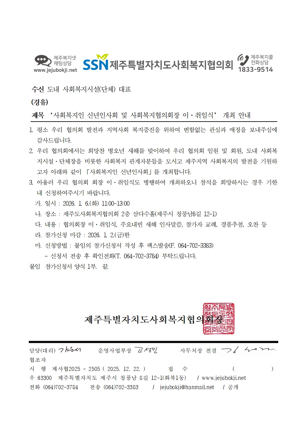 '사회복지인 신년인사회 및 사회복지협의회장 이·취임식' 개최 안내
