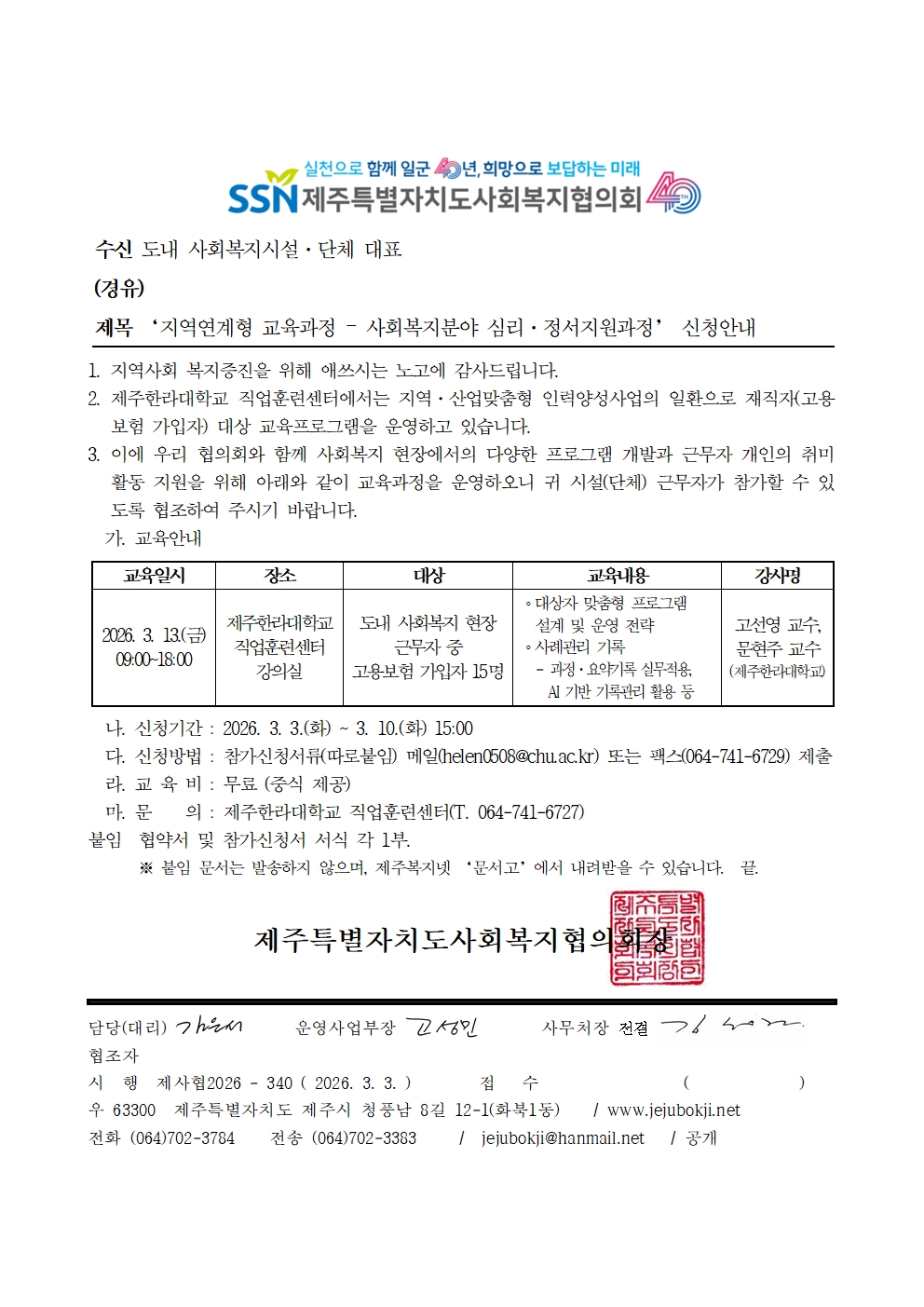 '지역연계형 교육과정 - 사회복지분야 심리·정서지원과정' 신청안내