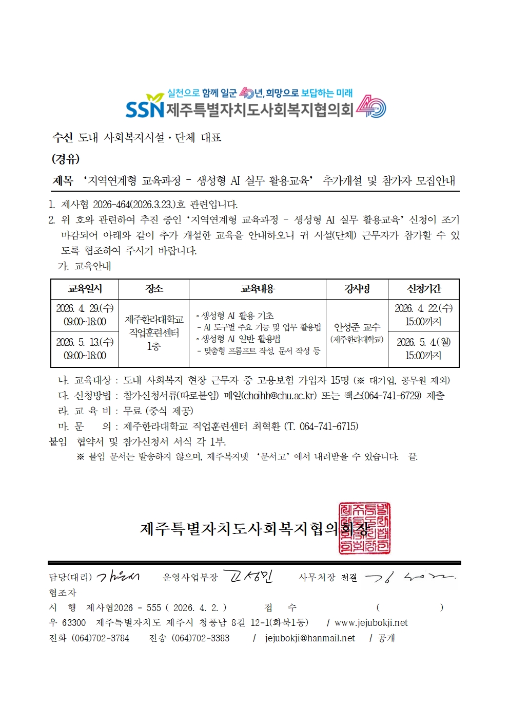 '지역연계형 교육과정 - 생성형 AI 실무 활용교육' 추가개설 및 참가자 모집안내