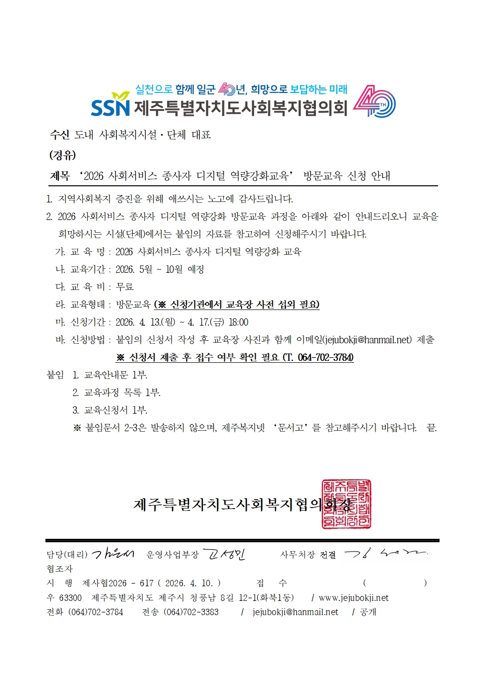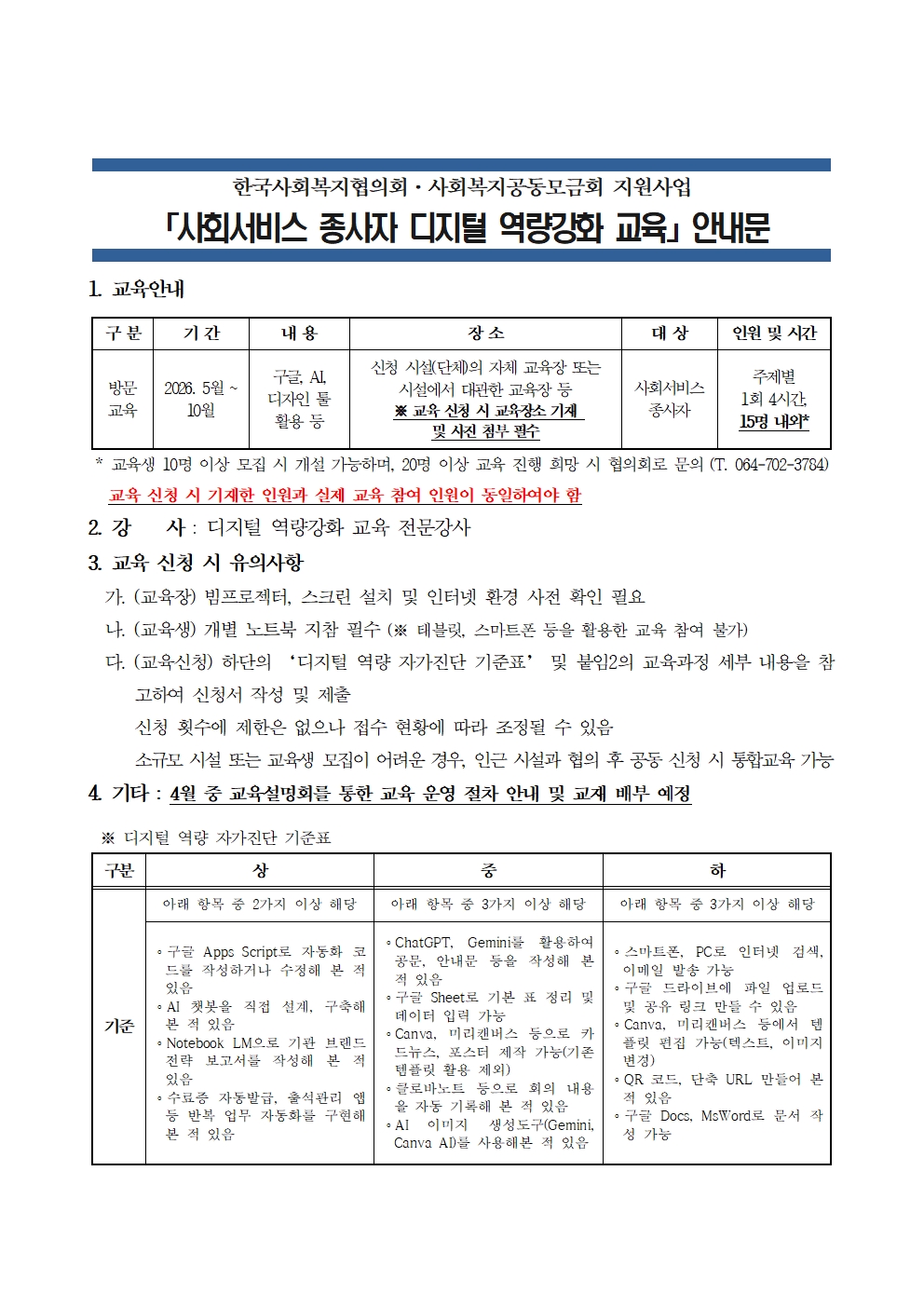 '2026 사회서비스 종사자 디지털 역량강화교육' 방문교육 신청 안내