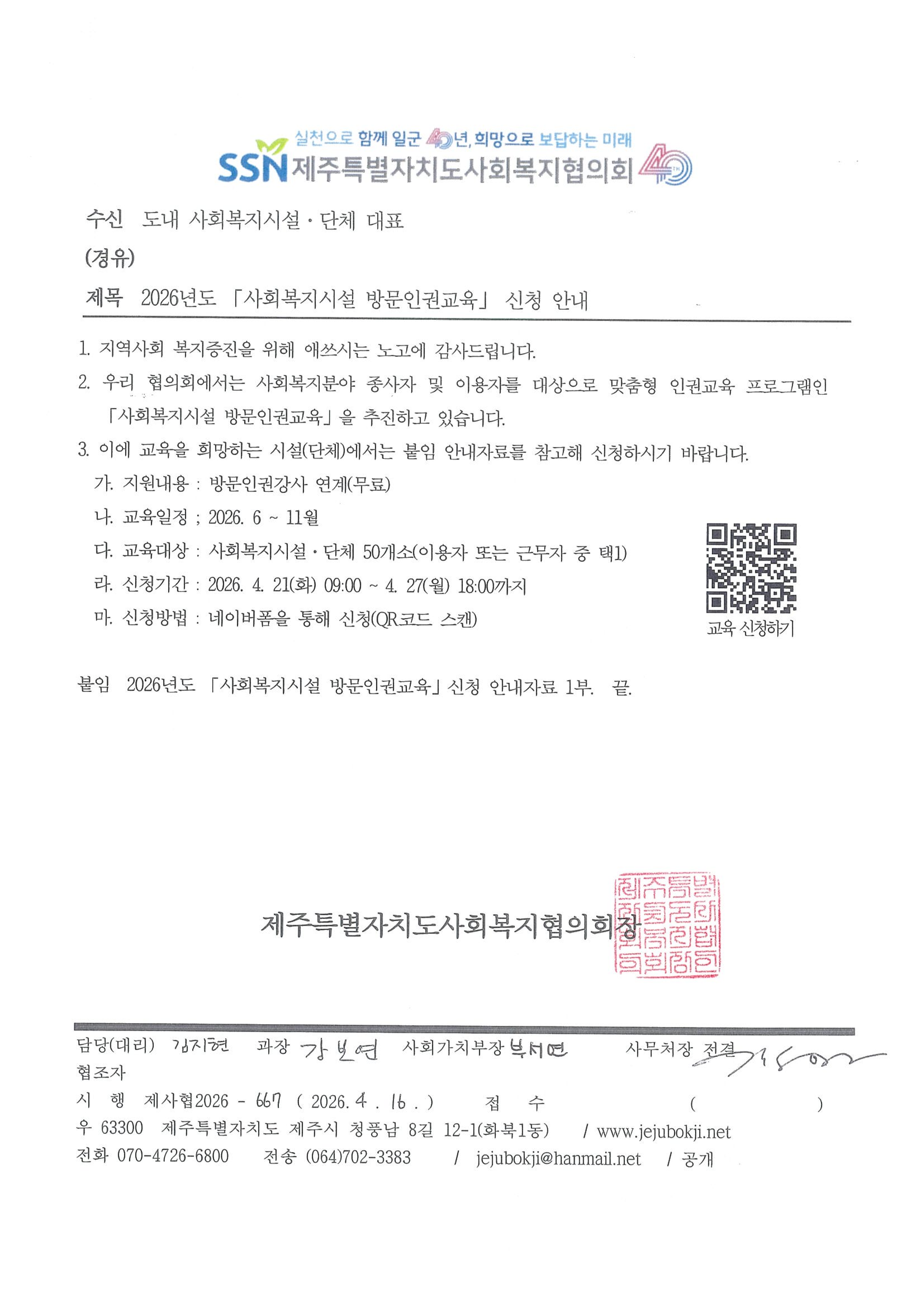 사회복지시설 방문인권교육 신청 링크 : https://naver.me/GLhBrRQi