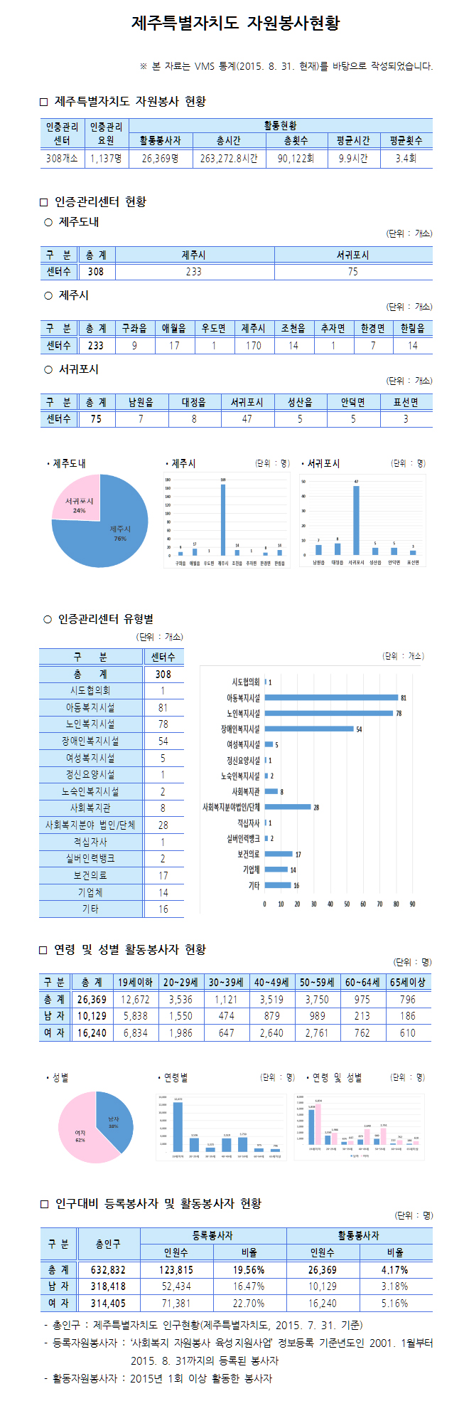 제주특별자치도 자원봉사현황(2015. 8. 31.기준)