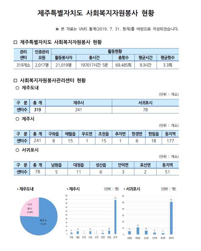 제주특별자치도 자원봉사현황(2019. 7. 31기준)