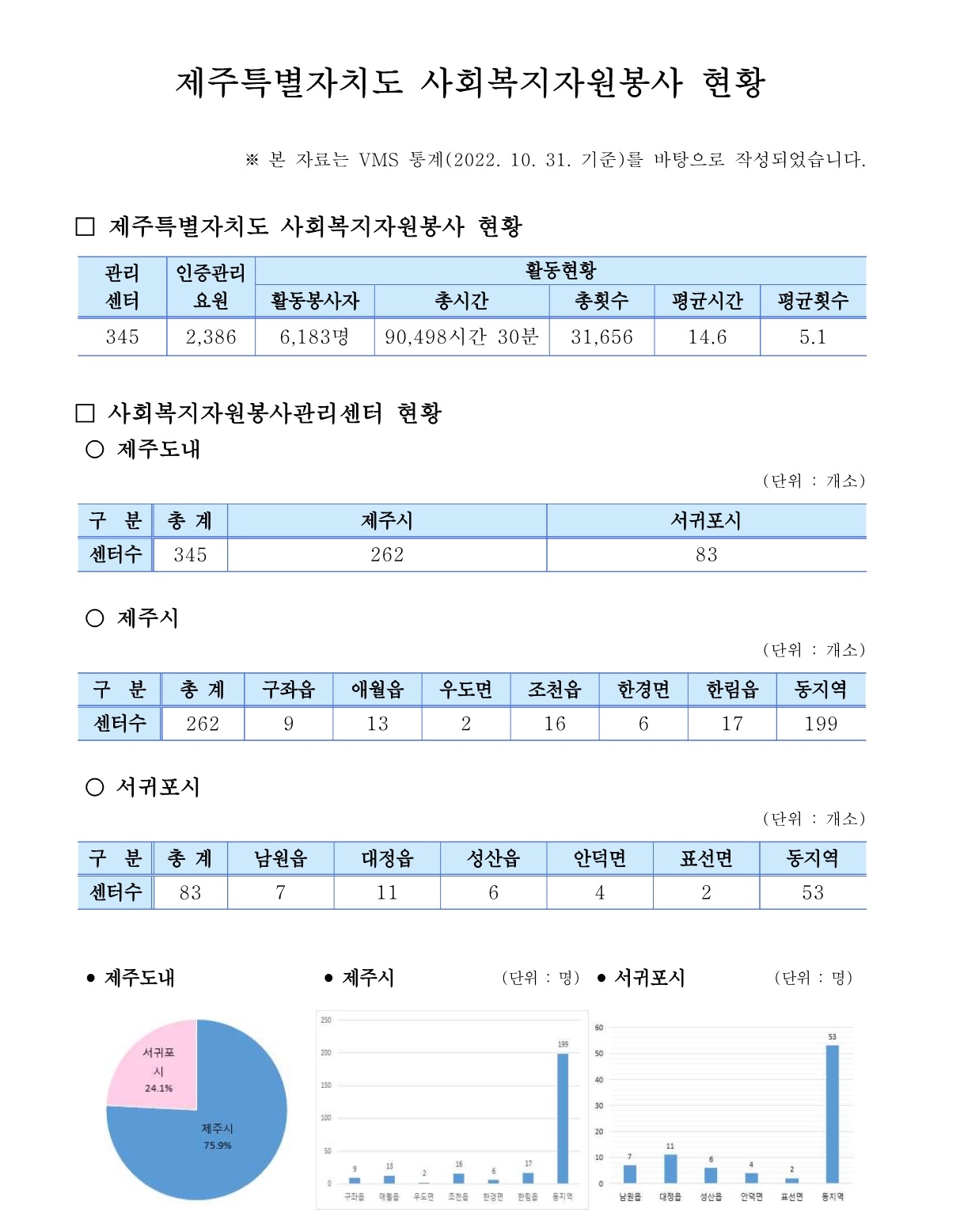제주특별자치도 자원봉사현황 (2022. 10. 31 기준)