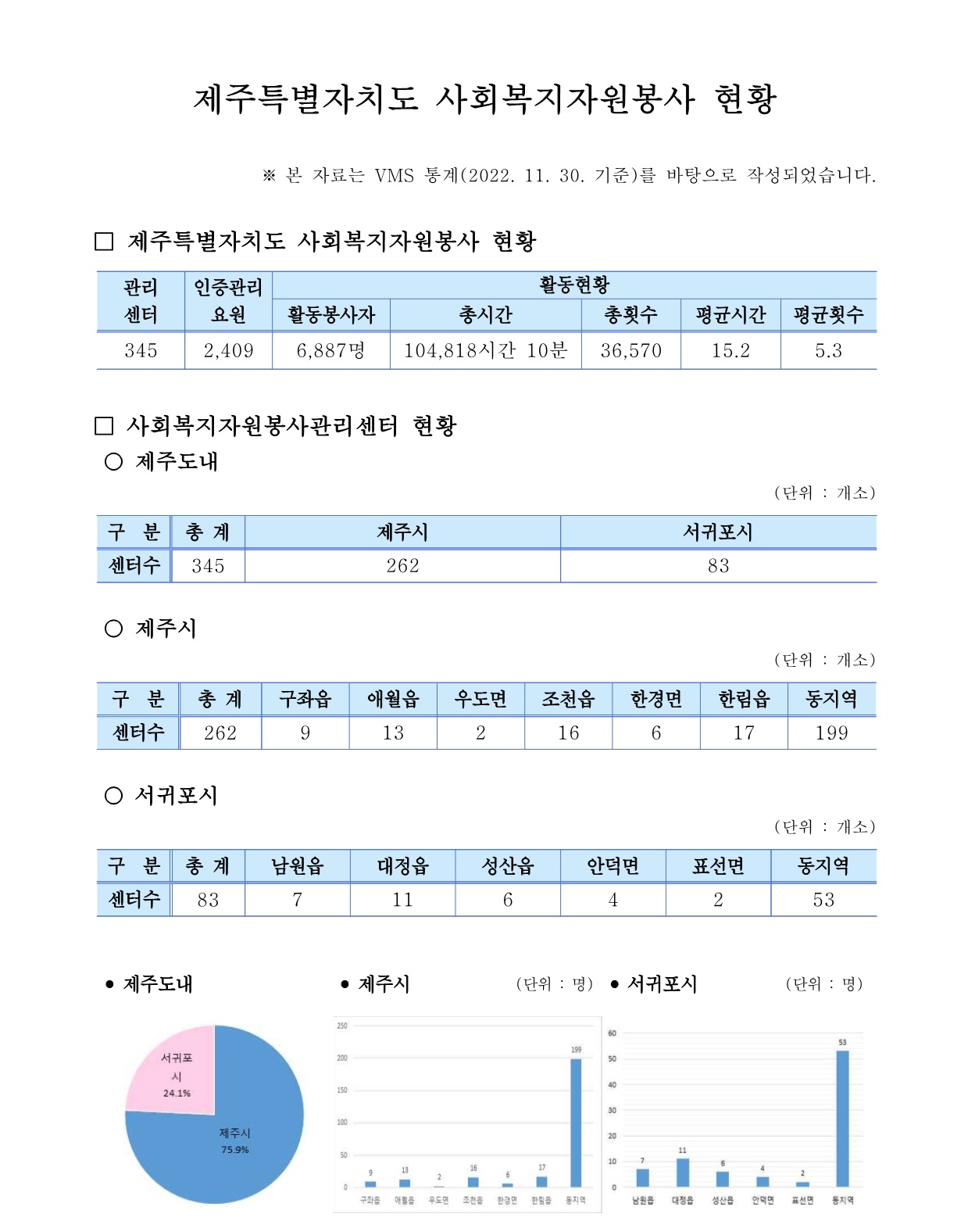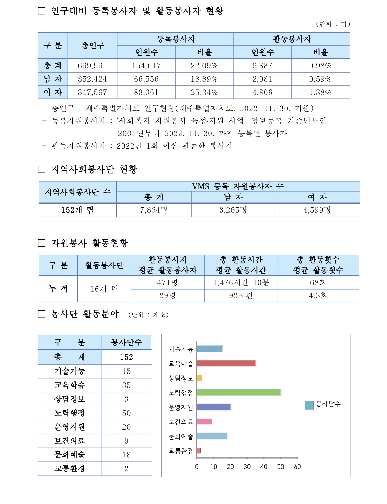 제주특별자치도 자원봉사현황 (2022. 11. 30 기준)