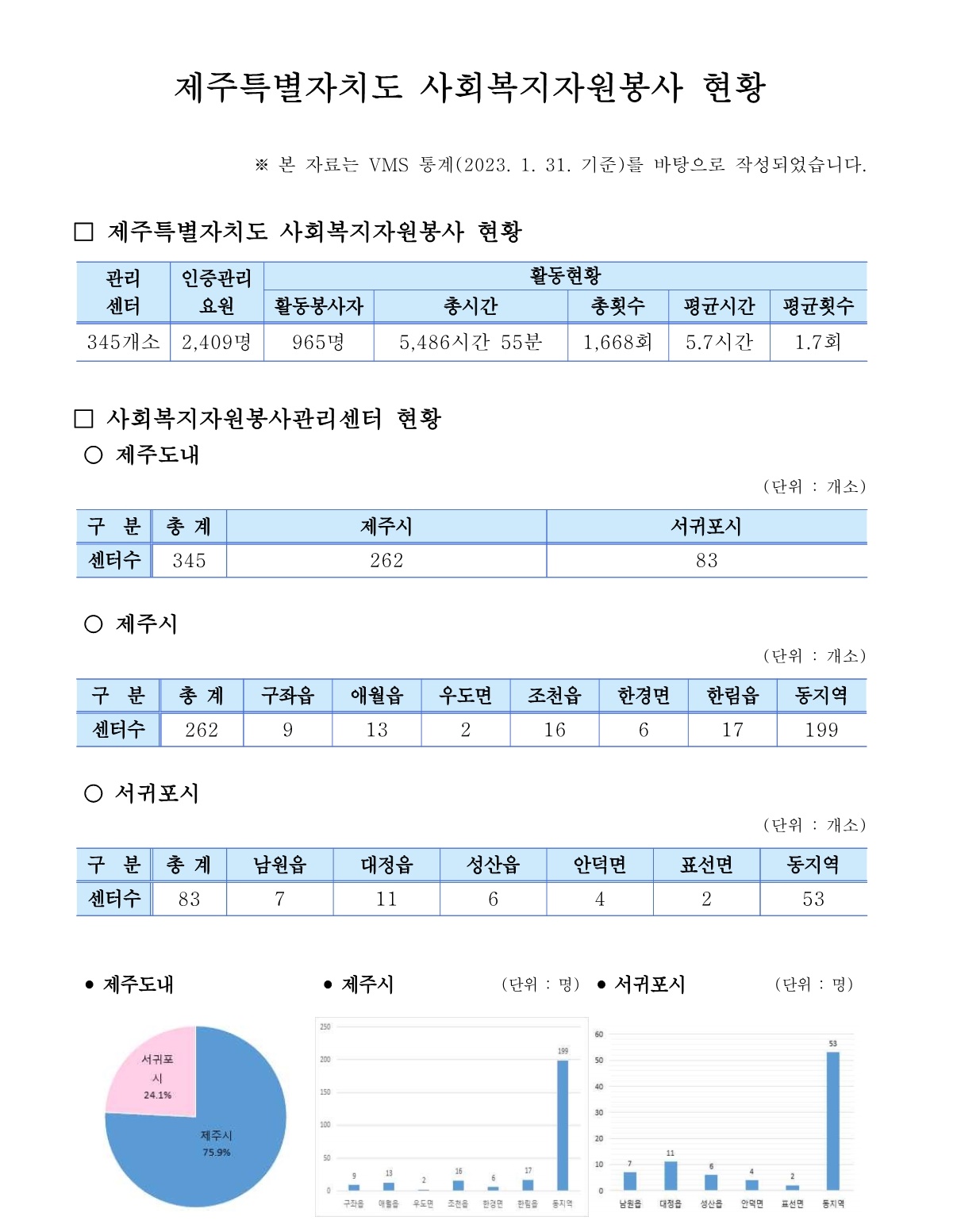 제주특별자치도 자원봉사현황 (2023. 1. 31. 기준)