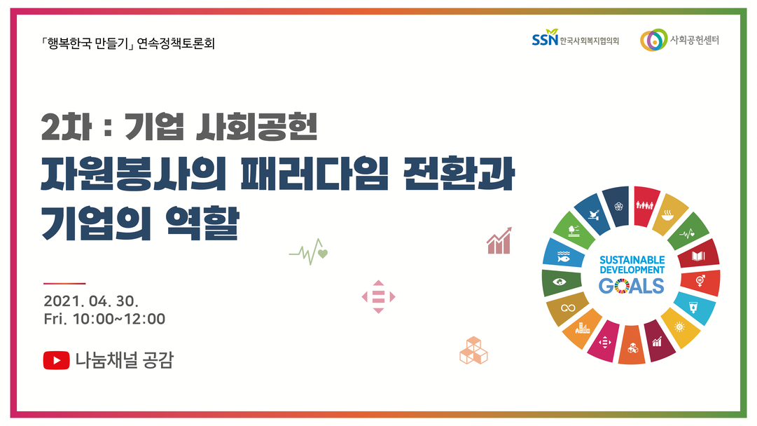 지난 4. 30(금) 한국사회복지협의회에서 진행된 「행복한국 만들기- 2차」 토론회 영상 공유해 드립니다.