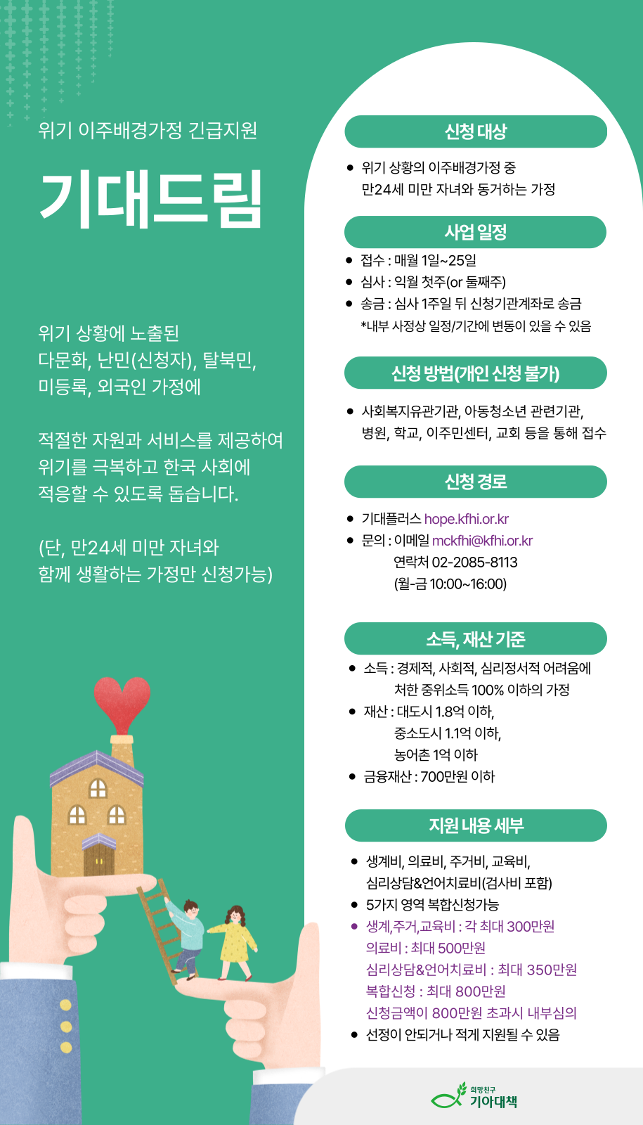 사회공헌공모 [기아대책] 2026년 위기 이주배경가정 긴급지원사업 '기대드림' (32차)