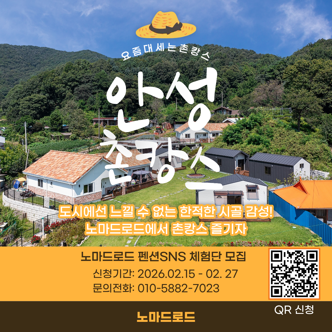 이에, 힐링을 원하는 대한민국 국민을 대상으로 노마드로드 펜션 SNS 체험단을 모집합니다.